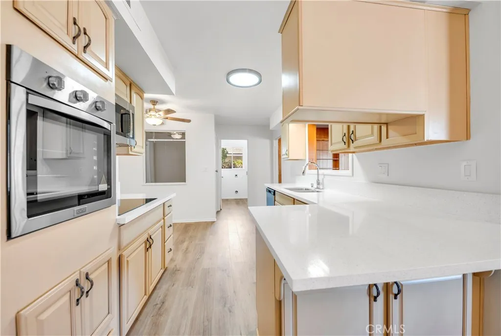 Welcome to this beautifully refreshed home offering style, comfort, and functionality! Recently updated inside and out, this property is truly move-in ready. Upgrades include fresh exterior and interior paint, brand new luxury vinyl plank flooring, and plush new carpet. The updated kitchen features new countertops, abundant cabinetry, and modern finishes, making it the heart of the home. Both bathrooms have been tastefully remodeled with updated vanities, sleek fixtures, and tile-surround shower. This home offers a spacious floor plan with a large bonus room showcasing beamed ceilings, built-in shelving, and a cozy brick fireplace. A wall of windows allows for plenty of natural light, making it the perfect gathering space. Step outside to the low-maintenance, desert-landscaped front yard and a covered back patioideal for entertaining or relaxing year-round. With its thoughtful upgrades, expansive storage, and timeless charm, this home is ready to welcome its new owners!