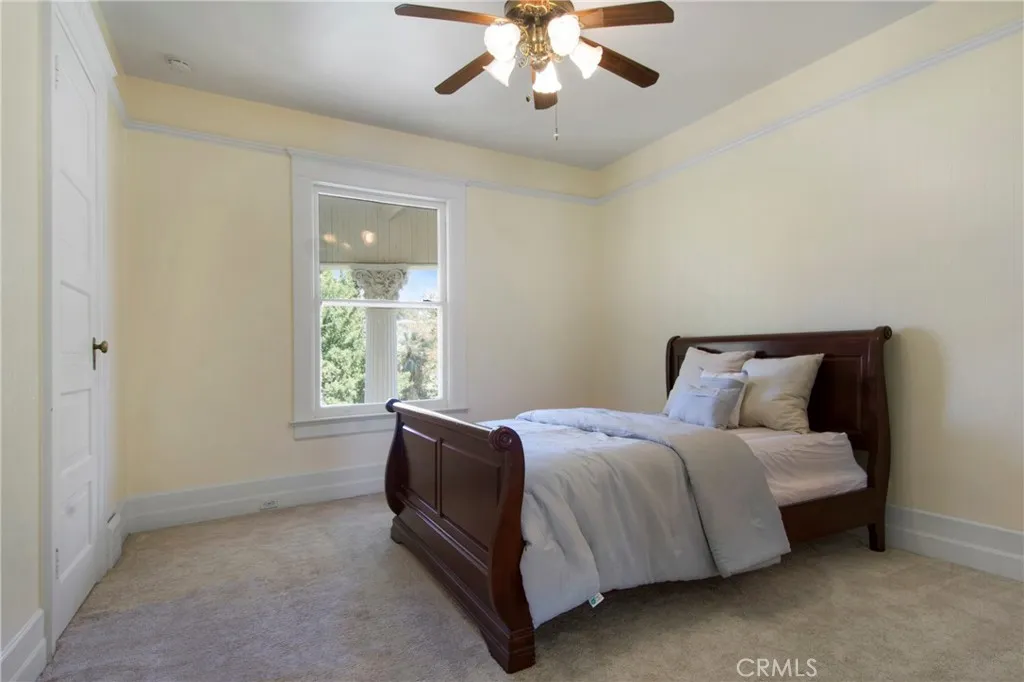 Stunning historical build nestled in the coveted Smiley Heights neighborhood. Set on more than 95,000 square feet of gated grounds, this estate blends classic character with a unicorn lot, and offers a rare mix of privacy, character, functionality, and charm. The main residence features three bedrooms upstairs, including a primary suite with a huge walk-in closet. A finished third-floor loft offers its own bedroom, bath, and generous walk-in closet. The main floor includes a full laundry room and a thoughtfully designed, upgraded, kitchen. Kitchen offers a built-in refrigerator, instant hot water, and appliances that will remain with the home. A separate two-bedroom, one-bath guest house with its own kitchen and living room provides flexible living options and adds significant versatility to the property. Outdoors, a sparkling saltwater pool and cabana with owned solar are complemented by an expansive orchard of more than sixty fruit trees, including citrus, apple, guava, jujube, lemon, pomegranate, grapefruit & olive. Raised garden beds provide an ideal space for fresh produce. The original carriage house has been transformed into a three-car garage, fully finished with power and drywall, plus 750-square-foot loft upstairs that is perfect for a studio, office, or creative workspace. Electronic gates, block and wrought iron fencing, and an alarm system provide security and peace of mind. Energy efficiency is supported by a leased solar system, which services both the main and guest homes and transfers at $291 per month. Born in the citrus boom era, this home is a Neoclassic