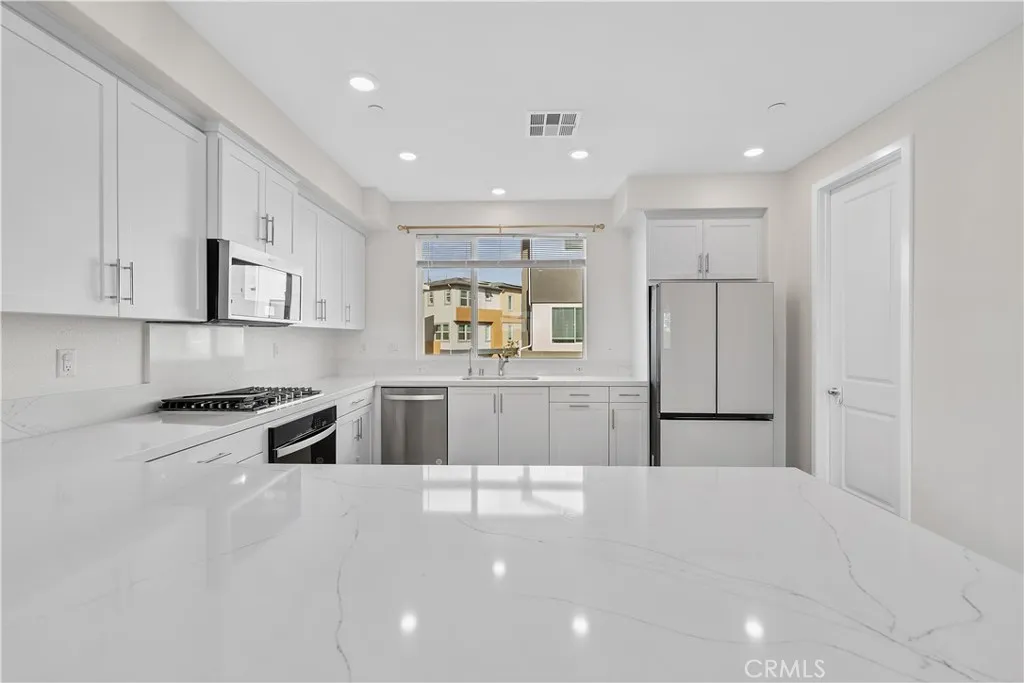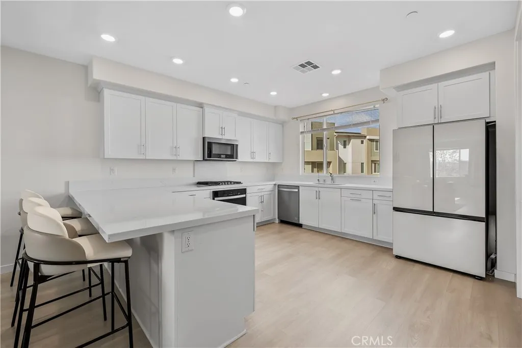 Welcome to your personal "SANCTUARY" at 27579 Sanctuary Ct, Valencia! This turn-key, top-of-the-line home offers a spacious three-level layout perfect for modern living and entertaining. On the first level, enjoy a private bedroom with an attached bath, ideal for an in-law suite or guest room. Ascend to the second level, where you will find a stunning kitchen and family room with breathtaking views in a prime location within this beautiful community. The kitchen is a chef's dream, featuring high-end appliances, energy saving upgrades, LED lighting, and fully paid-off solar. The third level hosts a second bedroom with full bath, plus an expansive primary suite with a luxurious spa tub, dual sinks, a connecting shower, and a walk-in closet, the ultimate retreat! You'll absolutely love the high ceilings, recessed lighting, beautiful hardwood floors throughout, and a spacious two-car garage. Enjoy resort-style living with a clubhouse, multiple pools, spa, playgrounds, barbecue areas, and scenic walking trails. Every detail has been thoughtfully designed for comfort, style, and effortless living. YOUR PERFECT SANCTUARY AWAITS!