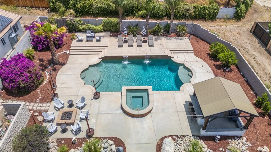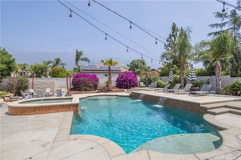 Exceptional style and resort-style comfort come together in this beautifully remodeled Alta Loma property. Featuring 3 bedrooms, 3 bathrooms, 2,142 sqft of living space, a formal dining room, 3-car garage, and newer solar panels, this residence sits on an expansive 20,000+ sqft lot. Inside, modern tile flooring flows through the downstairs, connecting the formal living room and family room for effortless everyday living and entertaining. The upgraded kitchen offers stainless steel appliances, built-in microwave, trash compactor, generous cabinet and pantry space, and a bright breakfast nook with bay window views of the backyard. Outside is your own retreat, with a sparkling pool and spa for eight, a backyard fire pit, and a built-in BBQ with beverage center and mini fridge, all surrounded by mature landscaping, mountain views, and a peaceful tree-lined street. The primary suite provides the perfect escape with a sitting area and dual walk-in closets. Located within the highly rated Alta Loma School District, including coveted Los Osos High School, and just minutes from restaurants, shopping, Trader Joes, and the 210 Freeway, this home blends convenience with serene living.