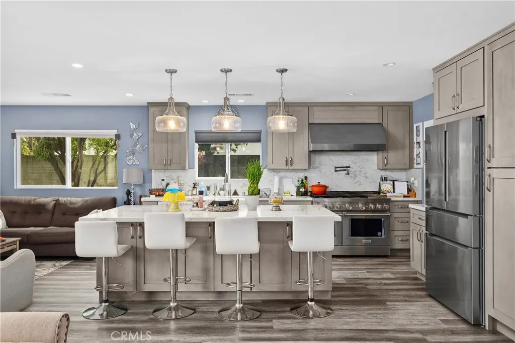 Welcome to this beautifully updated property nestled in one of Encinos most coveted neighborhoods, this beautifully updated residence offers the perfect blend of luxury, functionality, and California charm. Boasting 4 spacious bedrooms and 4 sleek, modern bathrooms, the home is thoughtfully designed to accommodate todays lifestyle with elegance and ease. Step into a bright, open-concept living space where natural light pours in, highlighting the seamless flow between the living room and the state-of-the-art chefs kitchen. This culinary haven features professional-grade appliances, including dual convection ovens, a six-burner gas range with a flat-top griddle, and a sleek stainless steel vent hood for powerful ventilation. The oversized kitchen island provides ample space for meal prep, casual dining, and entertaining. Outside, the property is a true oasis, adorned with fruit-bearing trees including fig, lime, tangerine, orange, and grapefruitperfect for enjoying fresh, seasonal harvests right from your backyard. The primary suite is a private retreat, complete with a walk-in closet and a sliding glass door that opens directly to the serene backyard. Whether you're working remotely or need a quiet space to focus, the dedicated home office offers comfort and productivity. Additional highlights include a large two-car garage, an extended driveway that accommodates up to three additional vehicles.