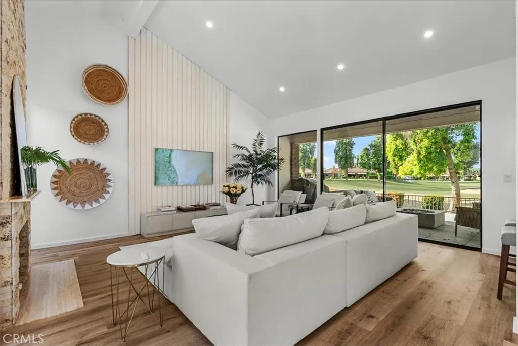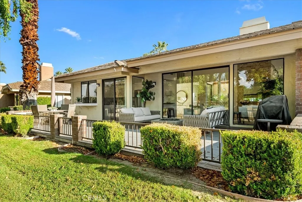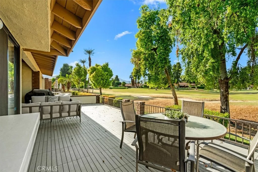 Discover the epitome of California Desert living in this impeccably remodeled, STR ALLOWED, turnkey 2-bedroom, 2-bathroom condo with a den, ideally situated in the prestigious Monterey Country Club. Boasting a fresh, clean, and modern aesthetic, this stunning end-unit home has been thoughtfully designed to combine sophistication with comfort. Every detail has been meticulously curated to create a harmonious living environment that invites relaxation and tranquility. With expansive views overlooking the lush golf course and serene pond, this exceptional property offers a seamless blend of indoor and outdoor living. The open-concept floor plan is bathed in natural light, accentuating the sleek finishes and high-end materials throughout. The chef-inspired kitchen is equipped with top-tier appliances, custom cabinetry, and pristine quartz countertops, perfect for both casual meals and entertaining. The spacious living areas open to a private atrium and in the back patio you can enjoy the scenic vistas. The primary suite is a true sanctuary, featuring a spa-like en-suite bathroom, incorporating a luxurious wet room design and dual vanities. A second bedroom and bath with walk in shower, along with a versatile den space, provide ample room for guests, work, or leisure. Offered fully furnished and turnkey, this home is ready for you to move in and start enjoying the laid-back yet refined lifestyle of Palm Desert. This property is VERY centrally located and just minutes from the finest dining, shopping, and cultural experiences the Coachella Valley has to offer such as El Paseo, th