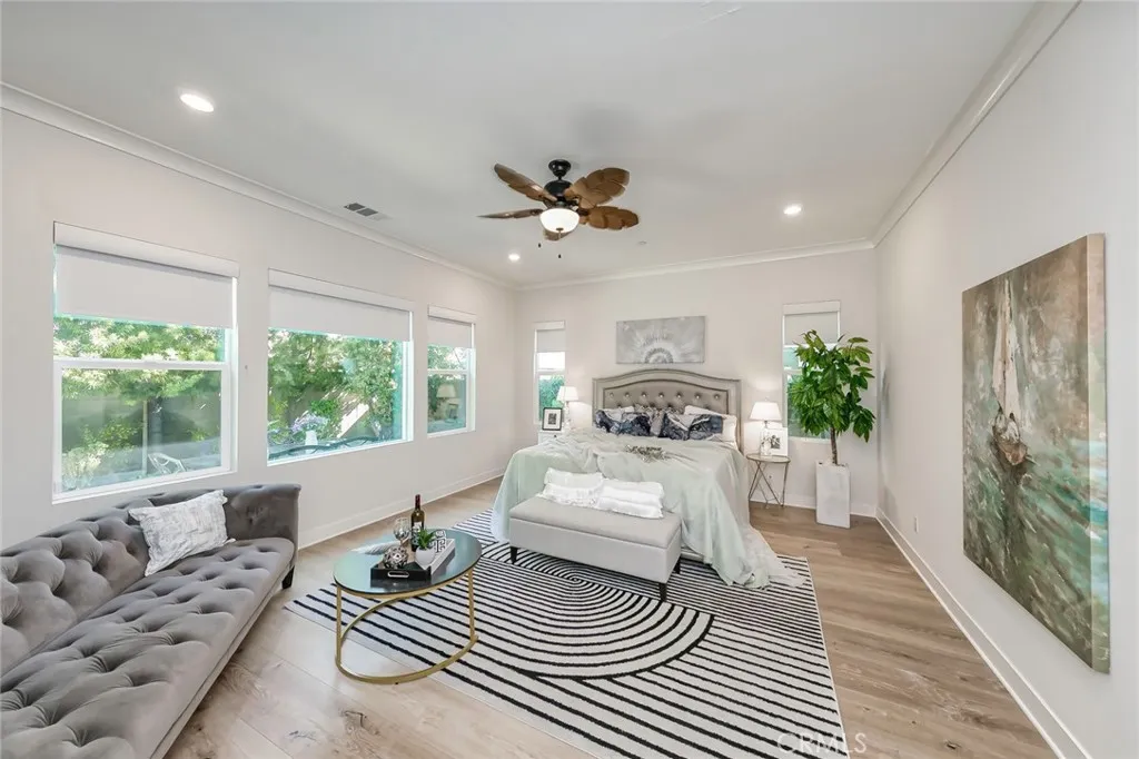 5 BED + 2 Main Master Room (down and up)+ LOFT | GUARD-GATED ALTAIR Stunning two-story home in the prestigious 24-hour guard-gated Altair community. Features 4 bedrooms, 4.5 baths, a spacious loft, and 2 Main Mater Room ideal for a home office and loft . The gourmet kitchen boasts a large island, built-in refrigerator, 6-burner cooktop, and ample cabinets, opening to the dining and living areas for seamless entertaining. First-floor bedroom with en-suite bath is perfect for guests. Upstairs includes a loft, laundry room, two secondary bedrooms, and a luxurious primary suite with dual walk-in closets, soaking tub, and separate shower. Designer upgrades include hardwood floors, crown molding, and plantation shutters. Professionally landscaped backyard provides a private space for outdoor gatherings. Altair offers resort-style amenities including pools, spas, parks, clubhouses, tennis courts, and playgrounds. Conveniently located near Great Park, Woodbury, Irvine Spectrum, shopping, dining, John Wayne Airport, and award-winning Irvine schools.