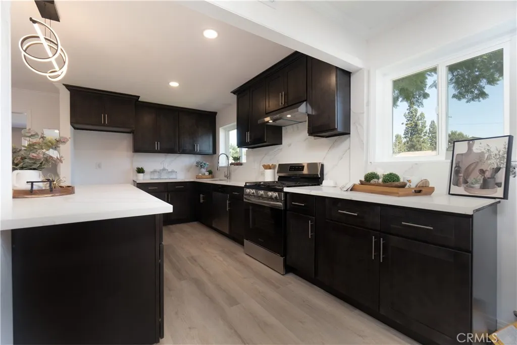 Step into this beautifully renovated cul-de-sac home, ideally situated in a sought-after northern Pomona neighborhood. Designed with both elegance and comfort in mind, this residence offers an open-concept layout and 2 primary suites, one upstairs and one downstairs and substantially more square footage than most homes in this area. The brand-new kitchen showcases soft-closing cabinetry, modern quartz countertops, designer lighting, and an oversized chefs island with additional bar seating, perfect for entertaining. All three bathrooms have been stylishly updated, while new flooring, fresh interior and exterior paint, recessed lighting, and new front doors add to the homes modern appeal. The property features a gated side yard for RV toy parking, an extended driveway for added convenience, and a fully finished garage complete with built-in shelving, an oversized workbench, and attic storage with pull-down ladder access. Located within the highly regarded Claremont Unified School District, and just minutes from the Claremont Colleges, University of La Verne, freeway access for commuters, and the expanded Metrolink. This home offers the perfect blend of lifestyle and location and is the Gem of the neighborhood.