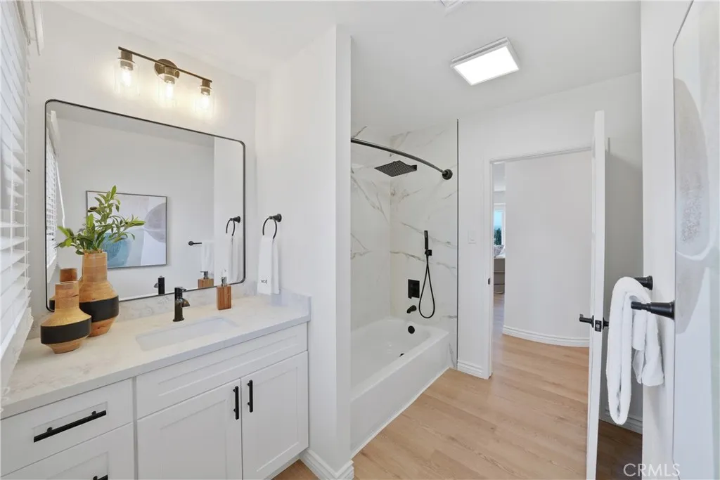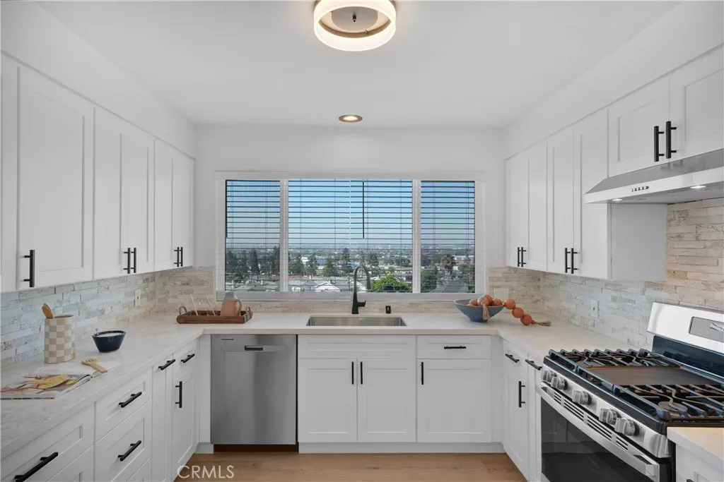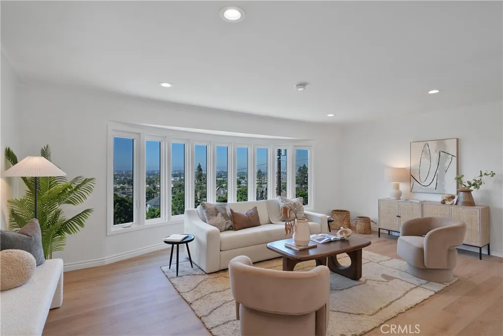 Come and check out this one of a kind hilltop home in Inglewood with it's panoramic views and nighttime city lights. If you love being surrounded with that city feel, it's airplane's, busy city streets but yet be so secluded above it all then this is the ideal place for you. Close to so much fun and activity nearby, such as beaches, freeway close access to all parts of Los Angeles, professional sports arenas, concert arenas, casinos, and LAX you'll be right in the heart of West Los Angeles. This home is on a lovely quaint little street that's charming and well maintain. Once you arrive you will immediately notice this home has been immaculately restored to a wonderful turnkey condition. It's been fully restored with completely painted exterior, new windows, updated exterior features, faux lawn with trimmed landscape and a beautiful new front door to welcome you. Once you enter, you will notice everything is brand new, from the floors, to new paint, an all new kitchen, new counters, appliances, cabinets, fixtures, lights, windows, stove, dishwasher, refrigerator/freezer, quartz counters with seating and ample cabinet space. Once in the living room area, you'll see that fabulous view through gorgeous new panel windows, and new floors and stand alone fireplace with recessed light, and looking out to the city below ties this altogether. Heading to the upstairs bathroom you'll see new marbled walls and a full bathroom tub, new cabinets, fixtures and toilet and new floor. Adjacent to the bathroom is the guest's bedroom and primary bedroom with a wide walk in closet. Both bedrooms