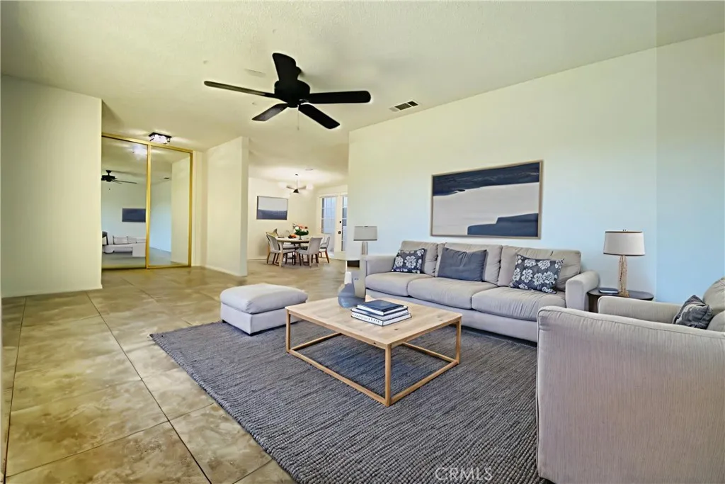 Charming 2-Bed, 2-Bath Home in Hemet Move-In Ready! Welcome to this beautifully maintained 2-bedroom, 2-bathroom home in the heart of Hemet. Featuring a spacious layout, this home boasts a large living room and a formal dining room with elegant French doors that open to the patioperfect for enjoying the cool breeze. A stylish wrought iron double gate adds charm and security to the patio entrance. Freshly painted interiors and new light fixtures give the home a bright, modern feel. Stay comfortable year-round with central air and heating. Both bedrooms are generously sized with ample closet space, and there are plenty of cabinets and storage throughout the home. The fully upgraded kitchen includes a new refrigerator, oven, microwave, and dishwasher. Enjoy cooking with redone cabinets, a sleek matte black faucet, and plenty of counter space. The home features beautiful large tile flooring throughout, with brand-new, plush carpet in the bedrooms for added comfort. The attached garage offers a dedicated work area and washer/dryer hookups. Solar panels provide energy efficiency, and there's additional private parking in the back. Located just minutes from popular shopping centers, restaurants, entertainment, and a nearby casinothis home has it all!