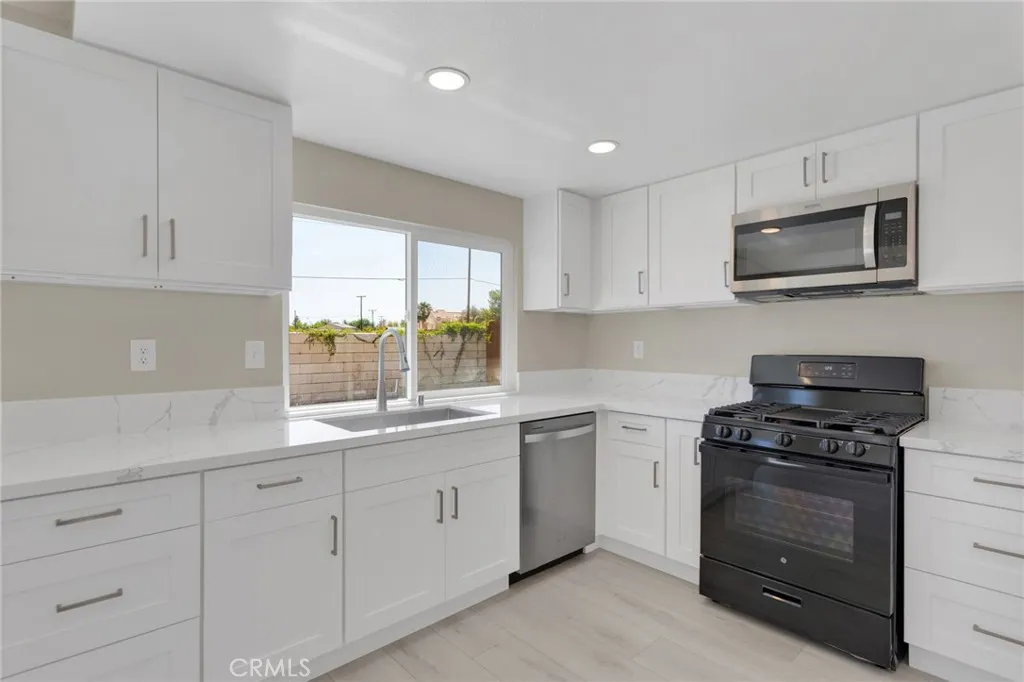 Victorville home with 4 bedrooms, 2 bathrooms, 1,528 SF of living space. Recently remodeled throughout, new interior and exterior paint and tons of updates, low maintenance drought friendly landscape. New wood laminate floors. Kitchen brand-new features. Quartz countertops, and white cabinetry.