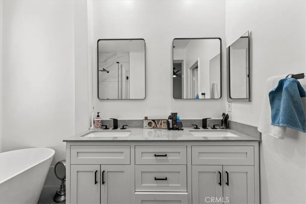This beautifully updated end-unit is flooded with natural light, giving the whole home a warm and welcoming feel. The upgrades are endlessbrand-new luxury vinyl flooring, sleek quartz countertops, all-new cabinets and vanities, and fresh hardware throughout. The kitchen is both stylish and functional with stainless steel appliances, a breakfast bar, and a cozy dining nook. French doors lead you out to a private patio with serene neighborhood views. On the main floor, youll find a spacious living area with a fireplace, an open kitchen, and a flex space that could easily be converted into a bedroom for guests or family. Theres also a half bath, making this level perfect for entertaining. Upstairs offers three bedrooms, a large bonus area, and a separate laundry room. The primary suite feels like a retreat with its walk-in closet, dual sinks, soaking tub, and separate shower. Location is everythingand here youre just a short walk to Mercantile West Shopping Center and Town Square Park, the hub of Ladera Ranch. Grab a coffee, enjoy the farmers market, or catch one of the many community concerts and movie nights. Add in resort-style amenities like hiking trails, sport courts, dog park, pool, spa, picnic and BBQ areas, fire pit, and clubhouse, and youve got the perfect blend of convenience and lifestyle.
