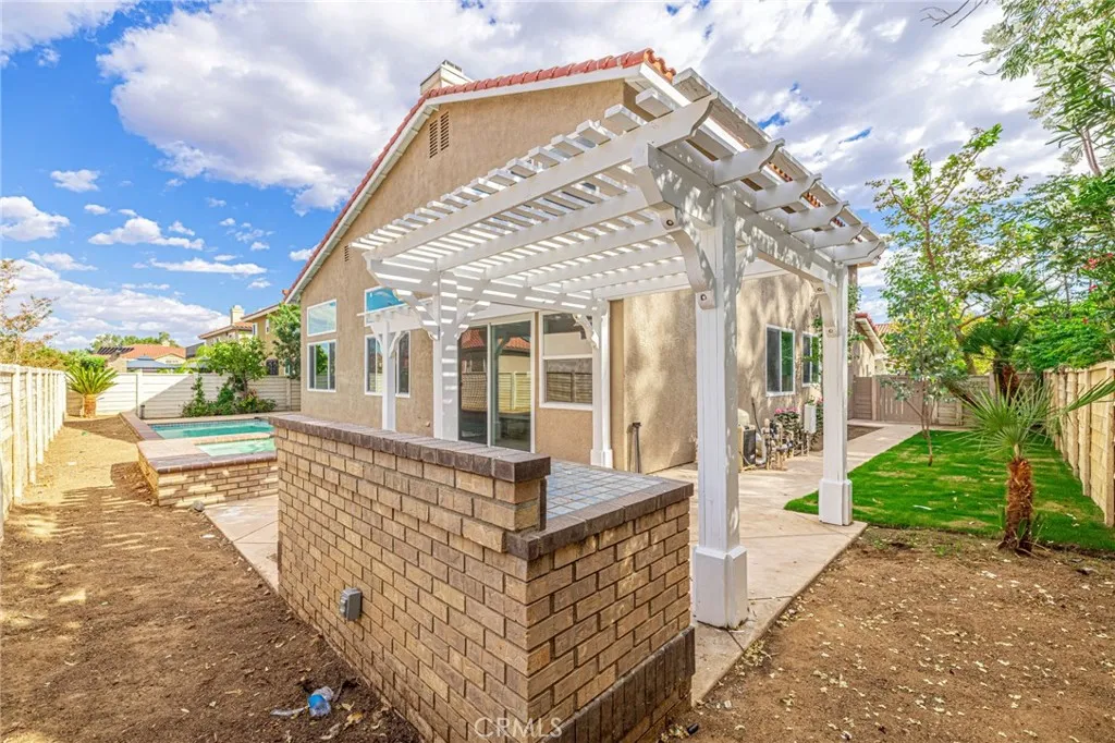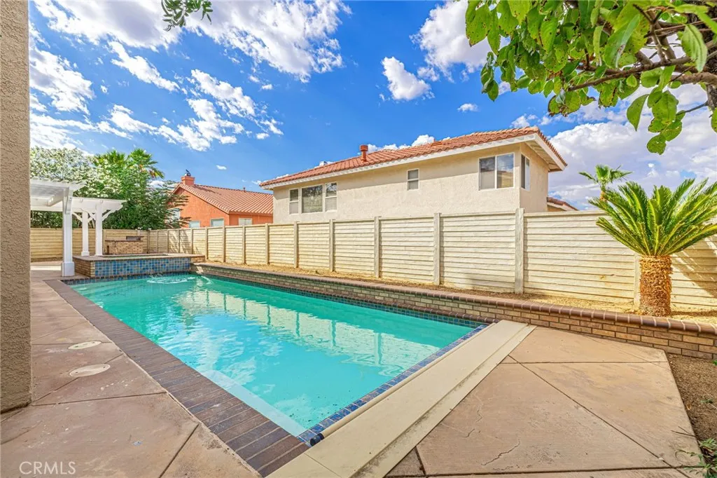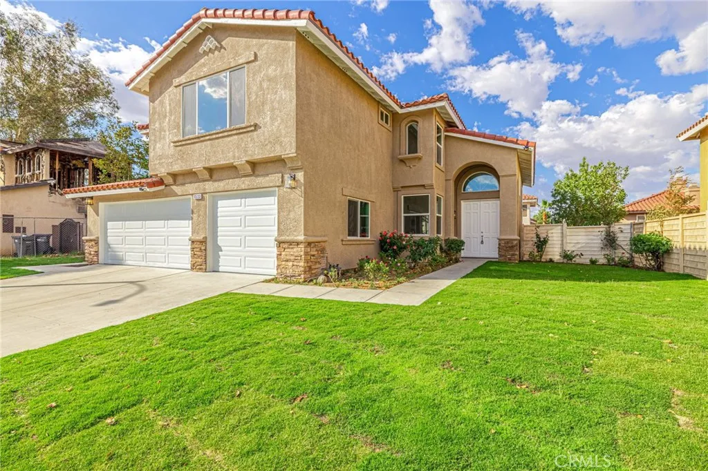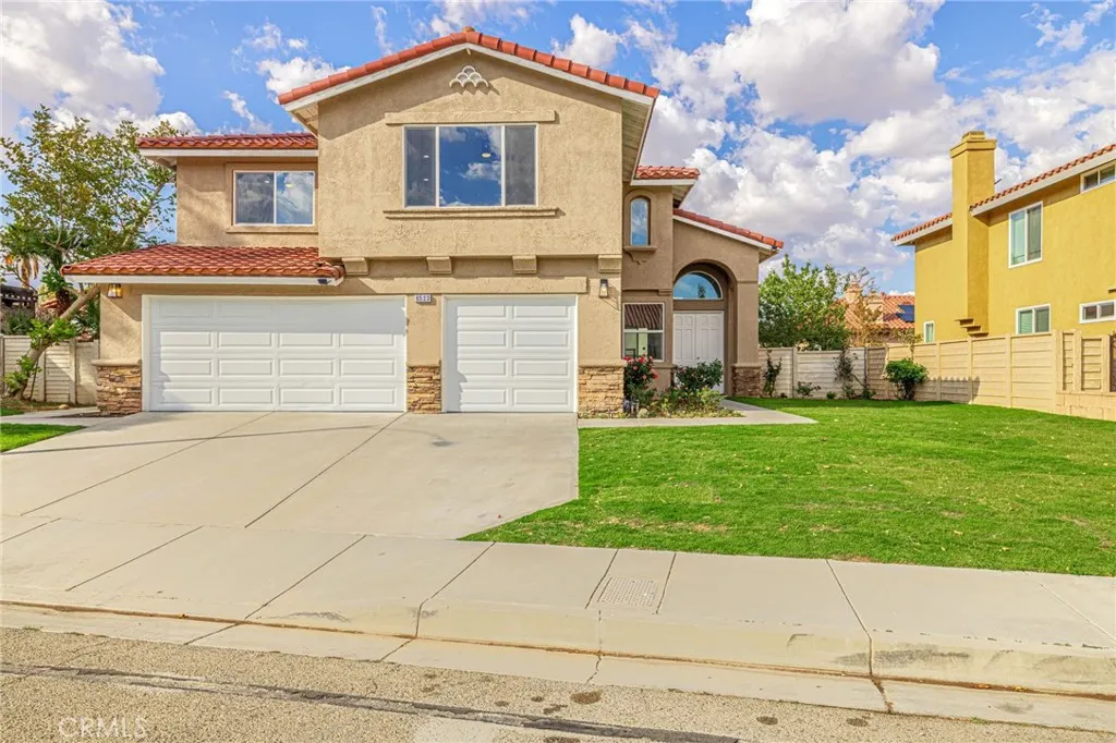 Big Westside 2-Story Pool Home in Monterey Collection by Barrett Homes! C Elevation with Rock Accents! 4 BR + Den + 3 Baths. 2504 SF. Built in 1999. Tile Roof. Stucco Exterior. Wood Trim. 3-Car Garage. New Roll-up Doors. Exterior Lighting. Lush Front Lawn and Rose Garden. 8-Foot Double Entry Doors! High Ceiling. LR/DR Combo. Dual Pane Windows PLUS Clerestory Windows. Impressive Staircase with Wrought-Iron Railing. Custom Interior Paint. Extensive Old Masters Hardwood Flooring by Du Bois! Upgraded Baseboards. Office/Den with Recessed Lighting. Digital Thermostat. Guest Bath is SOT with Quartz Counter and Rain Forest Shower Head. Indoor Laundry. 9-Foot Ceilings. Huge Kitchen with Recessed Lights. White Cabinets. Quartz Counters with Waterfall. Long Quartz Serving Table/Desk! Decora Paddles. Spacious Family Room with Fireplace and TV Cutout. 8-Foot Slider to Rear. New 2-Zone Air-Heat! New Plumbing! New Electrical Wiring! Upstairs Double Door Primary Suite with TV Cutout and Walk-in Closet. Primary Bath has Double Sinks, Oval Tub and Separate Shower. Tile Floor. 2 More Bedrooms with Ceiling Fans and Closets. 4th BR is Gigantic Open Bonus Room with Recessed Lighting (Just Needs Closet or Armoire. EZ Maintenance Backyard has Free-Standing Patio Cover with Built-in BBQ. In-Ground Pool and Spa! Lots of Flashburn Brick! Woodcrete Fences!
