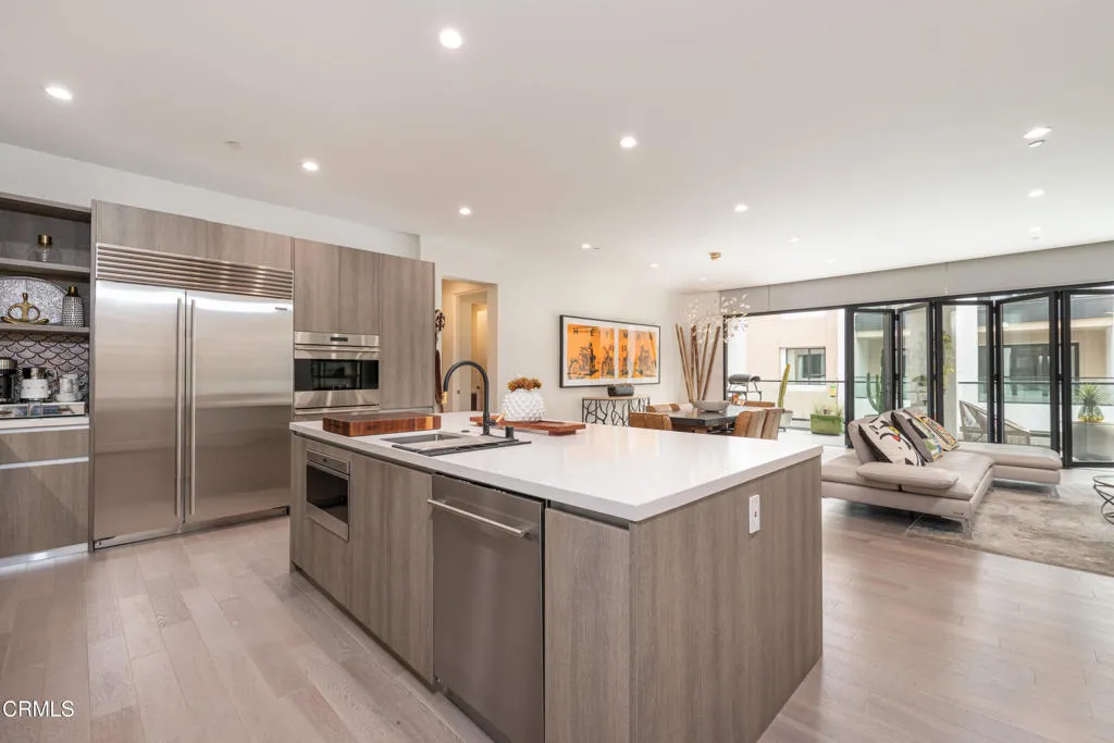 Welcome to the Terraces at Ambassador Gardens, where modern luxury is nestled within the charm of historic Pasadena. This stunning 3-bedroom, 3.5-bathroom residence offers 2,473 square feet of sophisticated living space, built in 2019 and thoughtfully designed for comfort, style, and convenience--all within walking distance of Old Town Pasadena's shops, restaurants, and iconic landmarks.The heart of the home is an expansive Great Room that seamlessly combines the living and dining areas with the gourmet kitchen, creating an effortless indoor-outdoor flow. Through impressive La Cantina bi-fold glass doors, the entire space opens to a spacious balcony, ideal for entertaining or enjoying Southern California's year-round sunshine. The chef's kitchen is beautifully appointed with Wolf appliances including a stove, oven, microwave and dishwasher, a Sub-Zero refrigerator, a massive island, and a walk-in pantry.The luxurious primary suite is a true retreat, featuring a spa-inspired bathroom with a soaking tub framed by a window, a rain shower, dual vanity, and an expansive walk-in closet, all enhanced by remote-control shades for comfort and privacy. Two additional en-suite bedrooms provide flexibility and comfort--perfect for guests, family, or a stylish home office. A guest powder room and a laundry room with built-in shelving add to the home's thoughtful design.This exclusive community offers resort-style amenities including a private subterranean 3-car garage, community pool, 24-hour security, fully gated access with additional building and elevator controls, and concierge serv