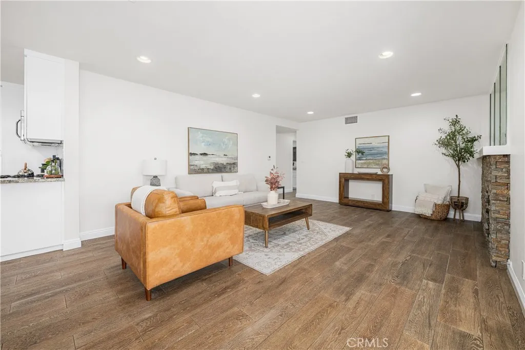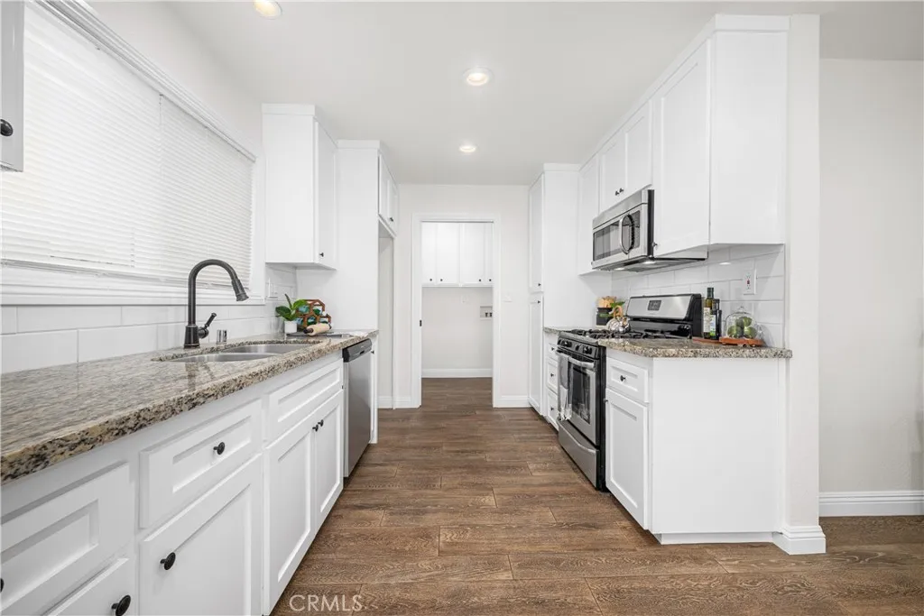 Don't miss this wonderful Garden Park 4 bedroom on a beautiful tree-lined street in one of the top Garden Grove neighborhoods. Features of this move-in ready home include: tile flooring throughout, recessed lighting, cozy gas fireplace in the living room which segways to an open and remodeled kitchen with newly refinished cabinetry, slab granite counter tops and a brand new dishwasher. Both bathrooms have been remodeled and include new shower hardware. The interior is freshly painted throughout offering double pane windows, central heat and A/C more. The large individual laundry room is conveniently located adjacent to the kitchen, but away from the living room and bedrooms. The backyard is very generous and private, with a covered patio and block walls surrounding. Additional features include: a long driveway with the ability to park several cars, sprinkler system, large garage with auto opener and freshly painted eaves/fascia. This is a great neighborhood and is proximate to freeways, entertainment and schools. Hurry, book your showing today!