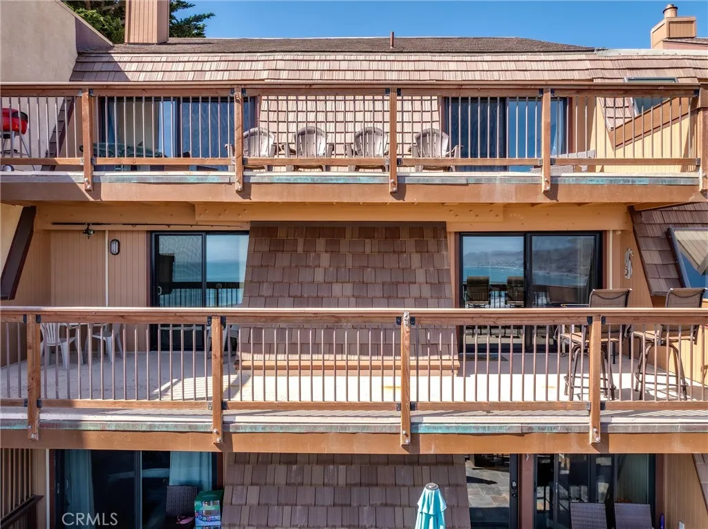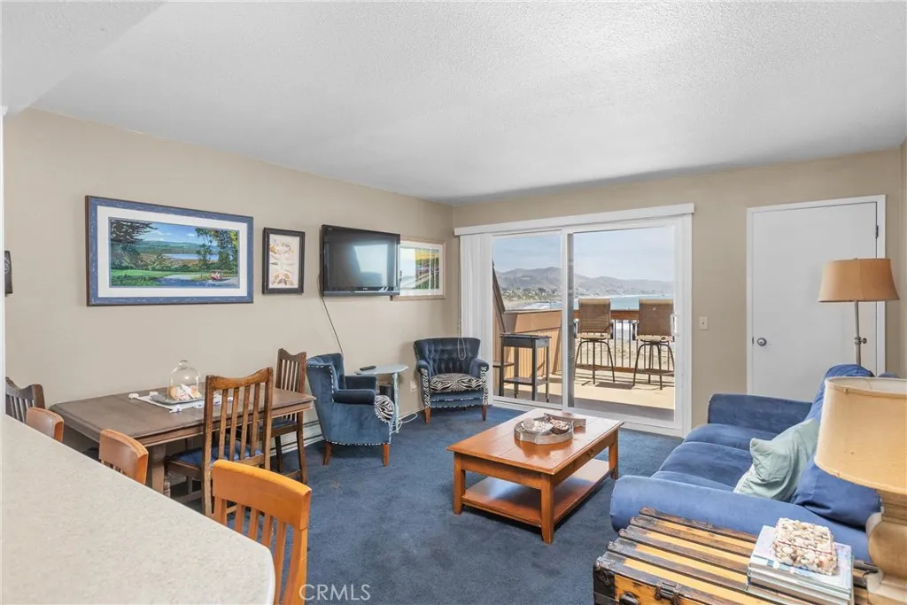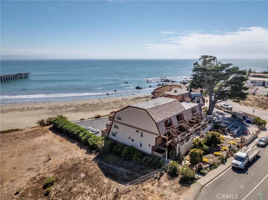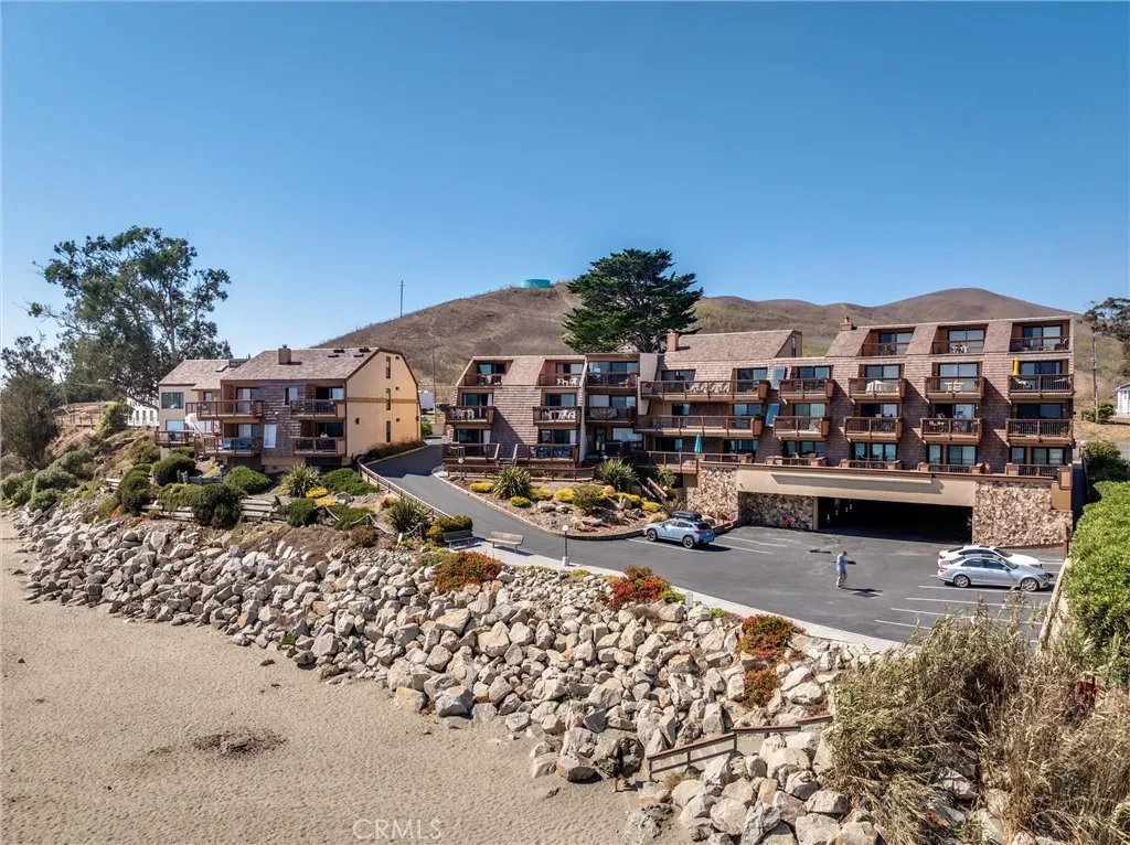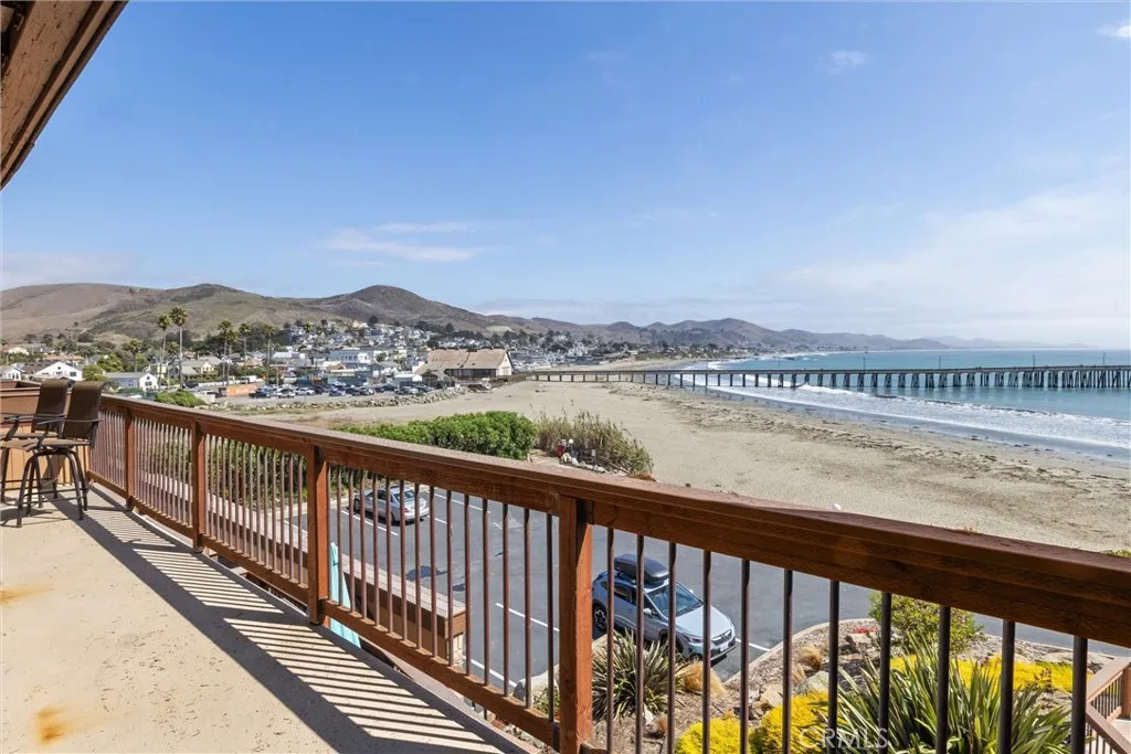 Stellar Oceanfront Condo with Sweeping Coastal Views. Enjoy stunning panoramas of Estero Bay, Morro Rock, the pier, and Cayucos from this sought-after oceanfront complex with private beach access. This thoughtfully designed condo maximizes space with an efficient floor plan and easier access than upper levels. The open-concept great room flows seamlessly to an expansive oceanfront deck of over 300 sq. ft.perfect for outdoor living and entertaining against a backdrop of ever-changing ocean views. The kitchen offers generous counter space and a custom pantry cabinet, while the adjacent living area provides direct access to the deck. An inside storage closet is conveniently located nearby, ideal for beach and deck essentials. The primary bedroom includes sliding-door access to the ensuite-style bath and opens directly to the deck for morning coffee with a view. A second entrance from the hall makes the bathroom easily accessible for guests and the additional bedroom. With its spacious deck, prime location, and smart design, this condo is a rare opportunity to embrace the best of coastal living.