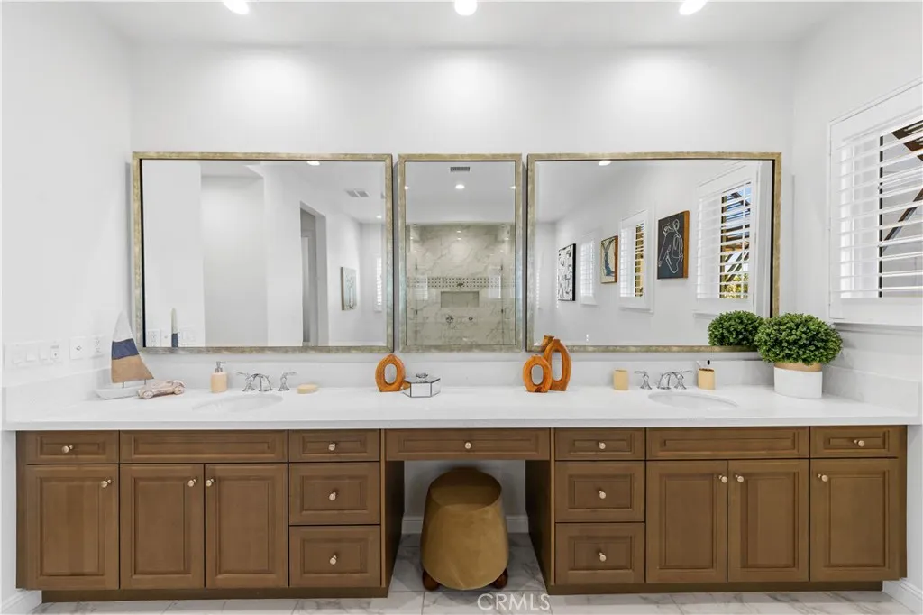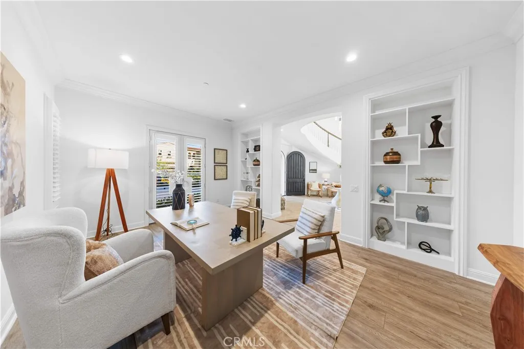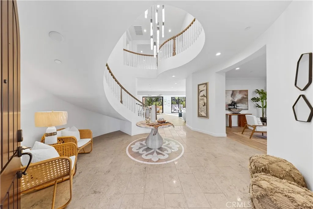 Sited in one of Irvines most prestigious communities, this beautifully designed home offers a seamless blend of luxury, functionality, and privacy. Set on a quiet street within the 24-hour guard-gated Groves of Orchard Hills, the property enjoys access to top-rated schools and exclusive resort-style amenities including a pool, clubhouse, tennis courts, scenic parks, hiking trails, and year-round community events. Upon entering, youre welcomed by an impressive grand foyer with soaring ceilings, a statement spiral staircase, and an elegant chandelier, all setting a refined yet modern tone. The expansive layout includes a large, light-filled loft with recessed lighting and windowsideal for a second living area or creative space. Designed with both everyday living and entertaining in mind, the home features a flex office space, two separate garages, and a chef-caliber kitchen complete with a walk-in pantry, prep kitchen, oversized island with breakfast bar, and premium stainless steel appliances. The primary suite boasts a luxuriously updated walk-in closet and a spa-inspired bath with a large all-glass steam shower, soaking tub, and expansive his-and-her vanities. Updated flooring and crisp white walls throughout the home enhance its brightness and clean elegance. The private backyard offers a peaceful retreat, while every detail in the home including added square footage and designer finishesreflects thoughtful upgrades and modern design. A rare opportunity to own a move-in ready, elevated home in one of Irvines most sought-after locationssurrounded by fine dining, serene lan