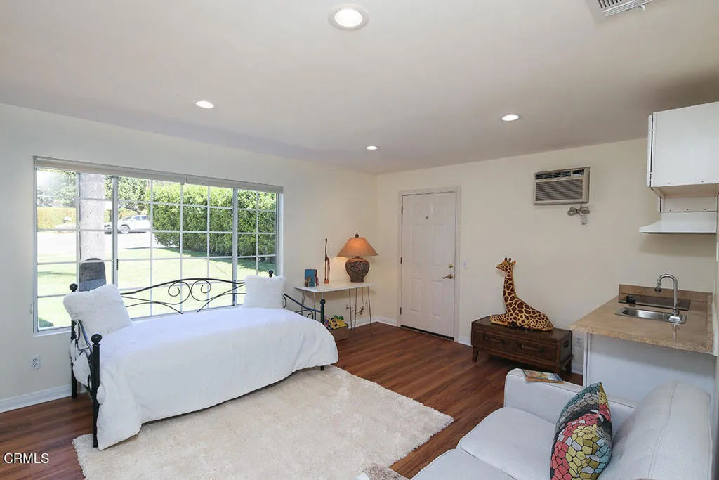 Motivated Seller!Beautiful custom built home located in highly desirable North Monrovia surrounded with gorgeous mountain views. Single level home offers an Atrium, Cathedral ceilings, formal living room, formal family room with a fireplace, lots of natural light, central air & heat, a total of 4 bedrooms; A primary suite along with a private guest room with its separate entrance, kitchenette & separate laundry area. 2 car detached garage with a long driveway large enough for an RV or boat, Rear yard with Pool and sitting area. Property has leased solar panels.