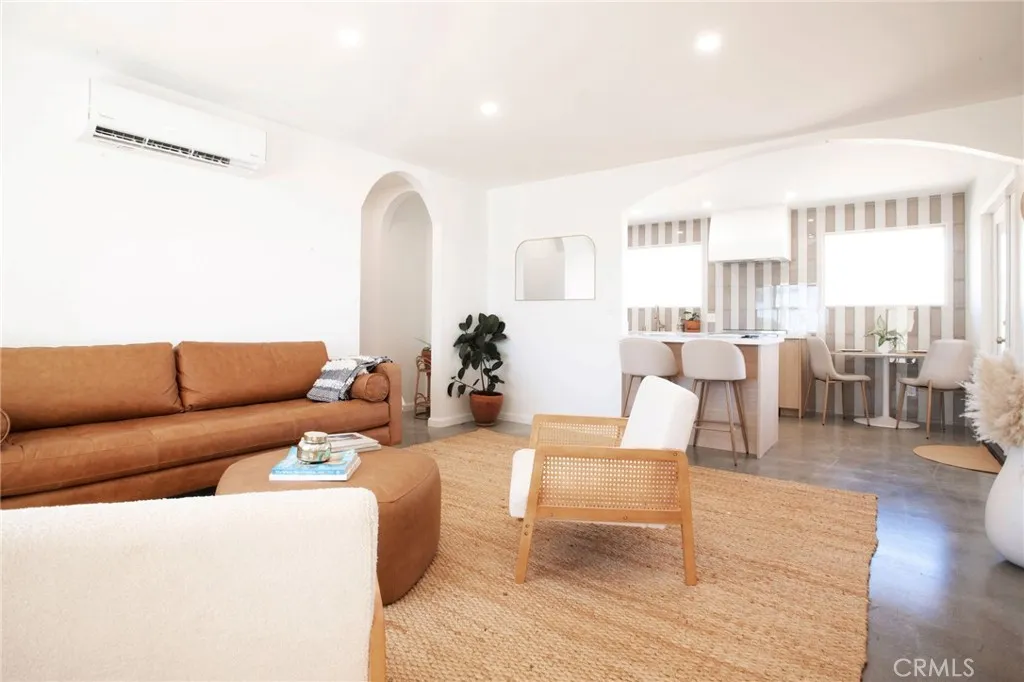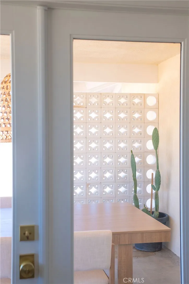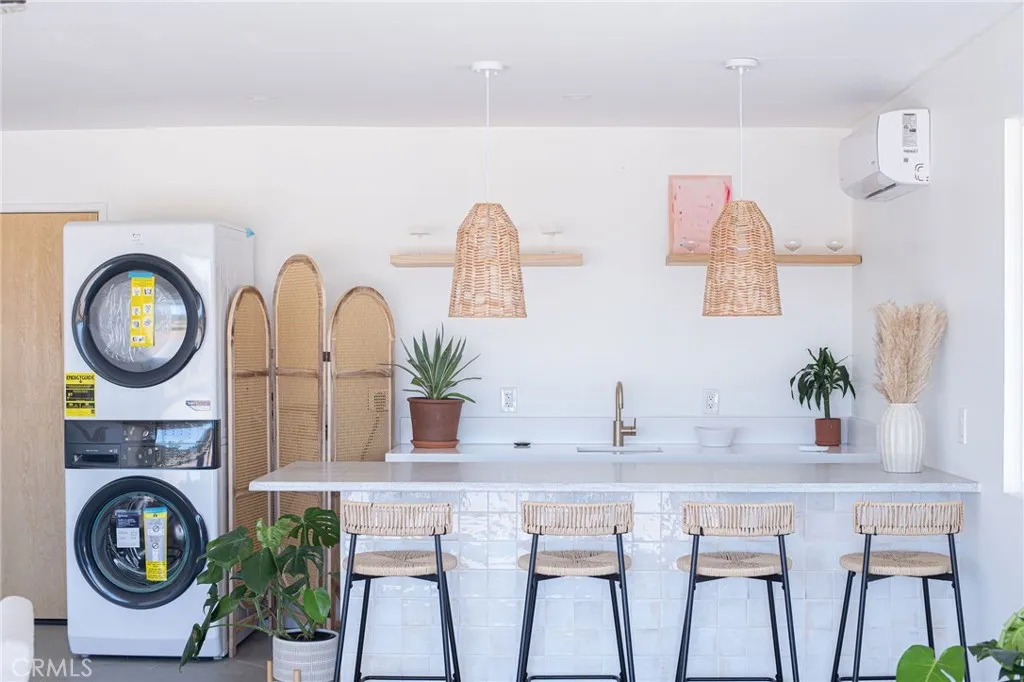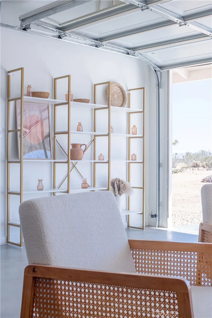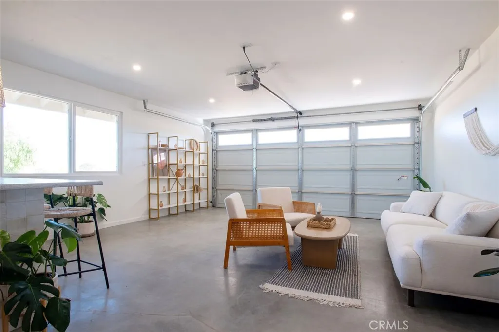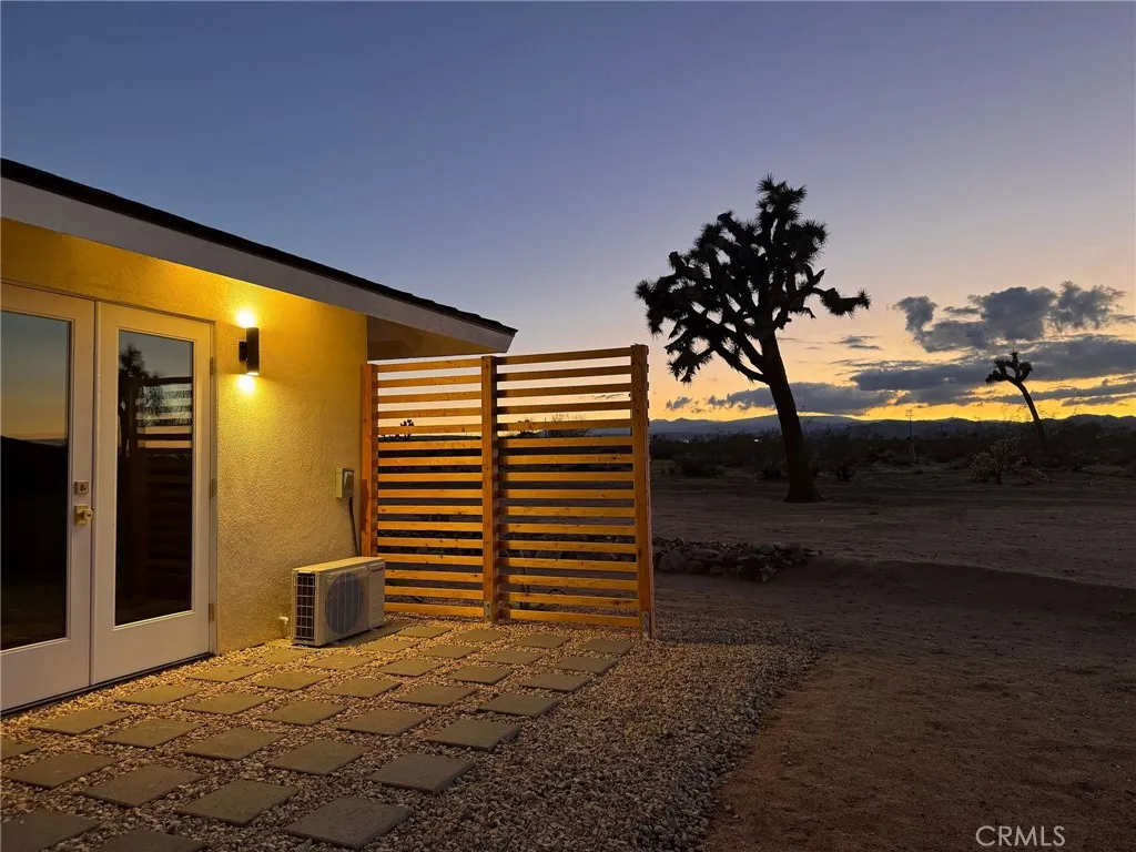 Welcome to 59676 Mitch Rd, where Bohemian Flair meets Desert Elegance. This gorgeous turn-key property has been completely remodeled with every feature intentionally chosen to bring you the perfect airbnb, desert home or weekend retreat. This house showcases 3 bedrooms, 2 bathrooms and 5 ACRES OF LAND with stunning panoramic desert & mountain views. Inside you'll find sleek concrete floors, tasteful decor & furnishings, rounded archways, recessed lighting and large windows that let in an abundance of natural light. The warm and welcoming living room flows effortlessly into the awe-inspiring kitchen and dining area complete with designer-style tile backsplash, bright quartz countertops, beautiful modern cabinetry, high-end FORNO appliances and bar seating. Each bedroom is well appointed with mini-splits for year-round comfortability, closets with custom built-in shelving and 2 of the 3 bedrooms adorn french doors that lead to their own private outdoor patios. Both bathrooms boast spa-like showers with sophisticated tile, glass panels and lovely new vanities with clean, modern finishes. The finished garage has been transformed into the ultimate hangout space equipped with a bar, wine fridge, sink, additional cabinetry, a mini-split and a cozy elevated lounge area (there is even a stacked washer/dryer for added functionality). It doesn't stop there; the serene outdoor living space includes a lovely covered patio for outdoor dining, an outdoor shower with a rainfall shower-head, ample space to entertain or relax around a firepit on a starlit summer night. Not to mention, there
