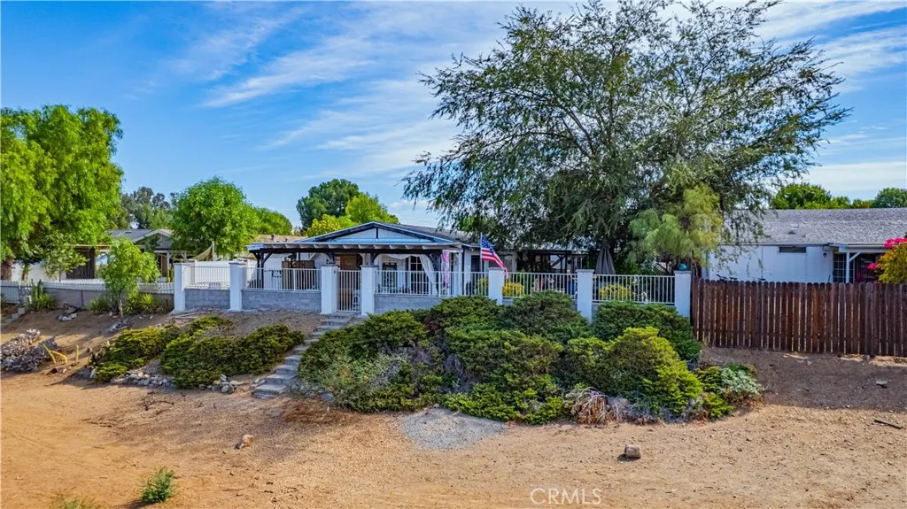 This charming 2-bedroom, 2-bathroom home in Wildomar offers breathtaking views of the surrounding mountains and stunning sunsets. Set on a spacious lot which backs up to an open space, the property provides a perfect blend of comfort and natural beauty. The property has upgraded hardscaping in the backyard with a very functional layout. A detached 4-car extra-large garage 38'x26', with extended 8ft height garage door and plenty of parking and storage as well as a separate office/bonus room with its own entrance. The Farm community offers a peaceful, amenity-rich lifestyle including RV parking, multiple pools, tennis courts, basketball courts, playgrounds, walking trails, and fishing ponds. Home qualifies for many types of financing including conventional, FHA and VA.