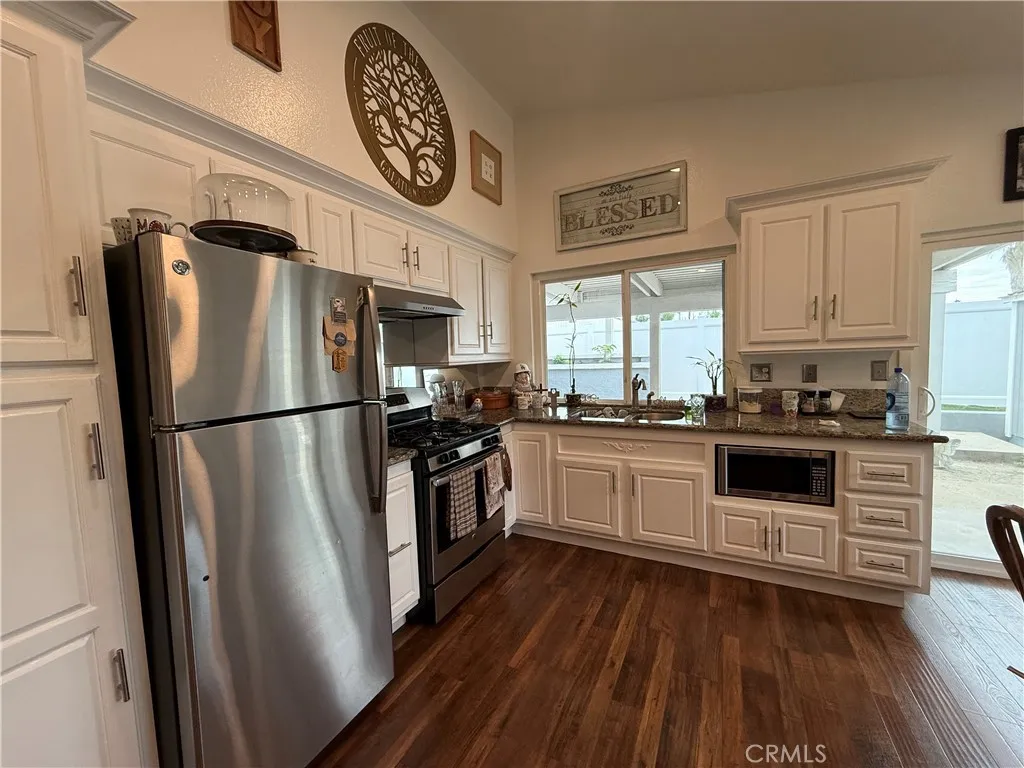 Welcome to this charming corner-lot home in Perris, offering fresh updates and cozy curb appeal. Step inside to find updated flooring and an open floor plan that creates a warm and inviting atmosphere. The living area features a fireplace, recessed lighting, two ceiling fans, and large windows that bring in plenty of natural light, all complemented by upgraded double-pane windows throughout the home. The kitchen seamlessly opens to the living space, perfect for entertaining or family gatherings. Outside, the spacious backyard has been upgraded with a new vinyl fence, providing both privacy and low maintenance. Conveniently located near the 91 freeway, major shopping centers, parks, and schools, this home is ideal for both comfort and accessibility.