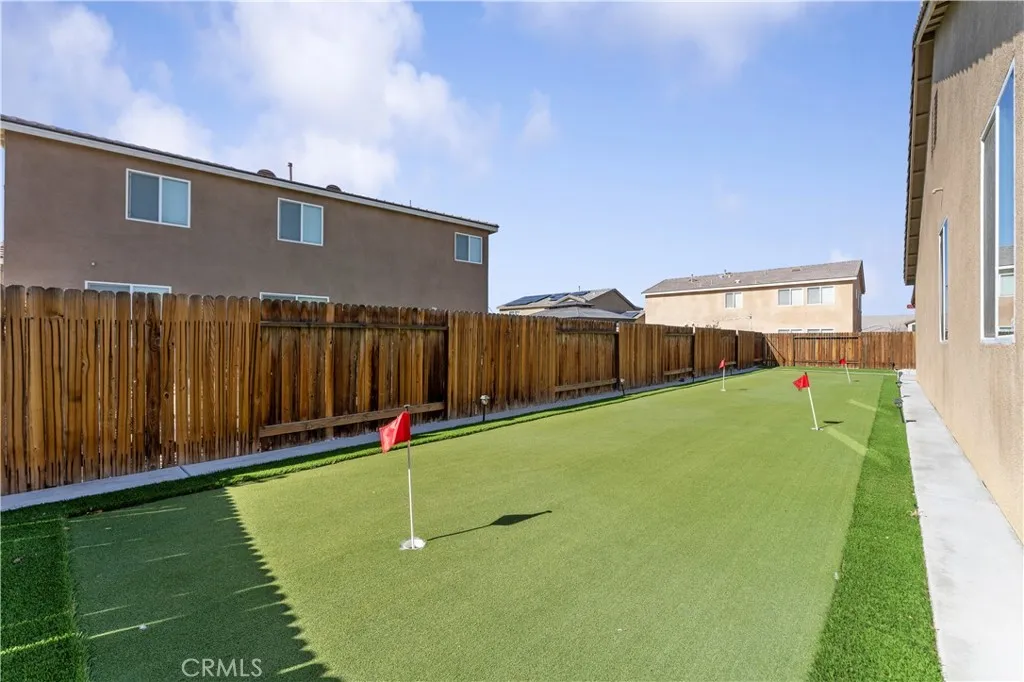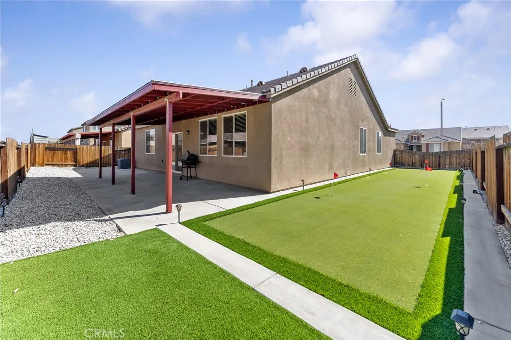 Turnkey, 1 Story home with awesomely flowing floor plan. No HOA. Separate Dining area. This home has a Den that makes it a 4 bedroom home. There's a separate guest bathroom besides 2 full bathrooms. Very clean and well maintained. No repairs needed, just move-in ready. The 3 car garage has a Tandem parking and color coated flooring. The backyard is a Golf Oasis with 4 putting holes. Roofed patio in the backyard with concrete flooring & gravel accents. Come see to be amazed, and it shows like a model home.