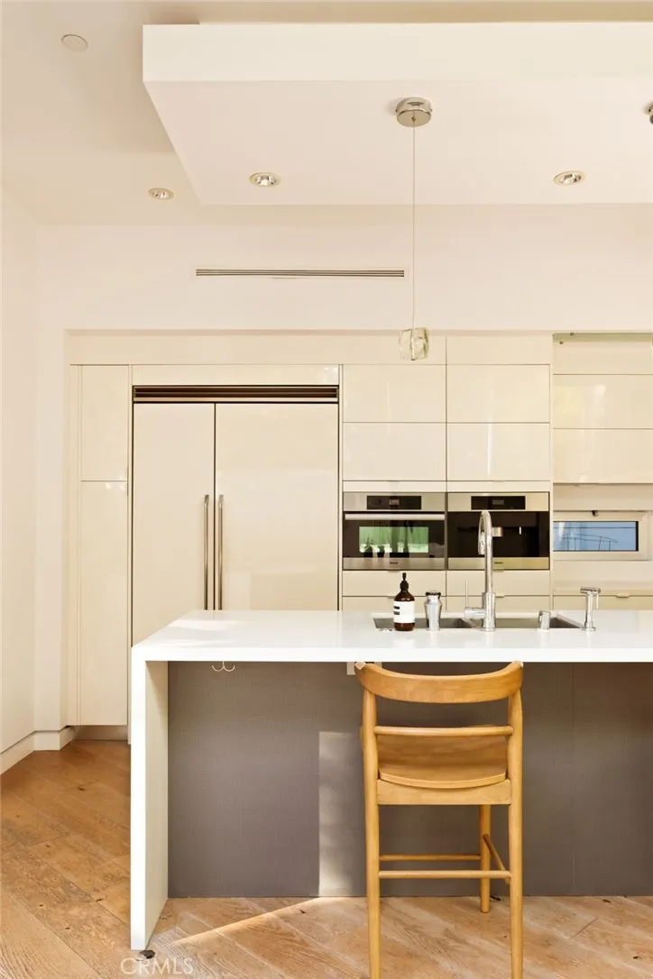 Experience the beauty of Venice Beach living at 936 Milwood a modern architectural jewel blending sophistication with effortless indoor-outdoor flow. Behind a private gated entry, light-filled interiors open through floor-to-ceiling glass to a sparkling pool, fire pit, and courtyard creating a true entertainers paradise. The main levels open floor plan showcases rich hardwood floors and bespoke finishes, while upstairs offers a serene primary suite with bonus space, an additional bedroom, office, and den. The third floor consists of a family room that opens into a rooftop deck. At the back of the house, a separate staircase leads to a private guest unit with attached bath, providing ultimate flexibility. On one of the best palm tree lined streets in Venice and just moments from Abbot Kinney, boutiques, cafes, and the beach, 936 Milwood is the ultimate expression of modern coastal luxury.