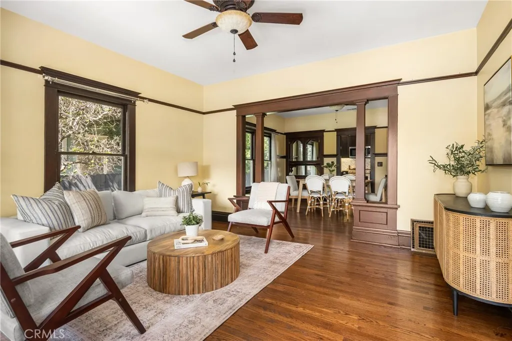 Located in the heart of the historic district of Old Towne Orange, this beautifully updated 3-bedroom, 2-bath home blends timeless charm with modern comfort. The inviting front porch sets the tone for relaxed evenings and neighborly charm, while inside youll find warm hardwood floors, an upgraded kitchen with stainless steel appliances, and remodeled bathrooms designed with todays lifestyle in mind. Enjoy the convenience of indoor laundry and upgraded central AC throughout the main home. In addition, a detached ADU provides incredible flexibility complete with its own kitchen, bathroom, and AC system, its perfect for guests, extended family, or rental income potential. Just moments from the Orange Plaza, restaurants, shops, and Chapman University, this home offers the perfect blend of history, community, and modern upgrades. May qualify for the Mills Act! Dont miss the chance to own a piece of Old Towne charm with added versatility!