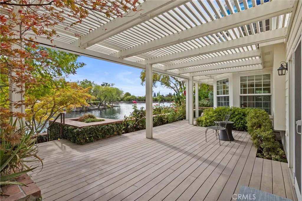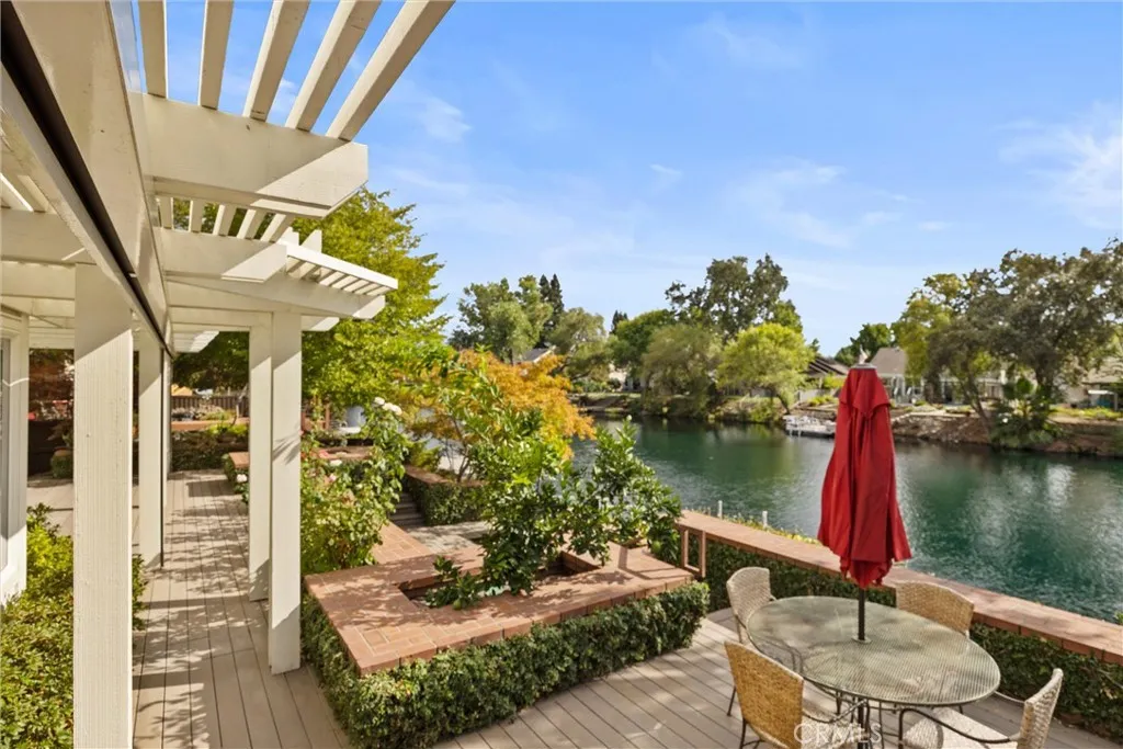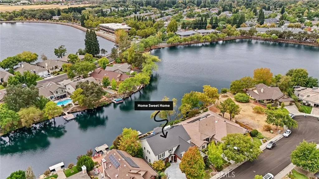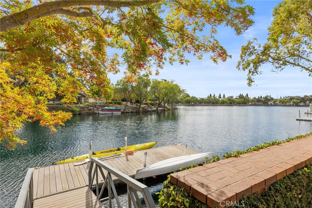 Welcome to 8 Dana Point, an incredible lakefront 4 bedroom 3.5 bathroom, 2 story home that spans over 3600 SF in the well sought after neighborhood of California Park. Enter into the home and you are met with travertine floor tile, custom stained transom glass above the front door, and a well fitted coat and storage closet. Adjacent to the entry is an office with a bay window complete with storage underneath. Enter into the kitchen with a spacious layout featuring granite countertops, cherry wood cabinets, updated GE and Cafe appliances including 2 convection ovens, 2 microwaves one of them being Advantium, and a Dutch door refrigerator with both chilled and hot water, tons of storage and counter space and a window outlooking the lake. The formal dining room is big enough for those family gatherings and features a tray ceiling painted with blue sky and clouds. Turn the lights off and watch the painting come to life with glow in the dark star constellations applied by a certified technician. Enjoy an open concept flow from the kitchen to your breakfast nook with panoramic windows outlooking the lake and a living room fitted with two large sections of built in cherry wood cabinets and shelving. The garage has space for 3 cars or 2 cars and a workshop. Complete with built in storage cabinets, two 8'x8' suspended storage platforms, and a washboard sink. Step out to the back patio and enjoy a large multi level deck that spans the width of the house over looking the lake with built in brick planter beds and your very own private dock to get onto the lake. 2 kayaks, paddles, and l
