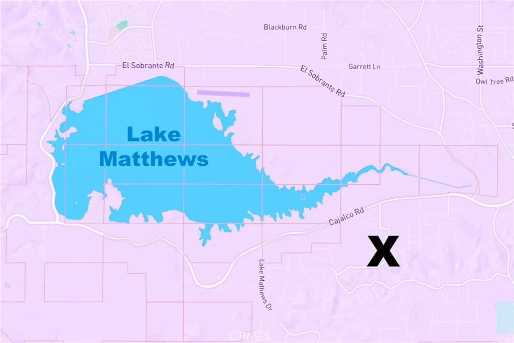 Views of Lake Matthews! Located in an area of million-dollar homes, this 2.24 acres has access to water and electricity. Septic needed. The lot is outside Perris City limits in Riverside County. County zoning is R-A-2 1/2 Residential Agricultural, which allows a single-family home. Easily buildable!