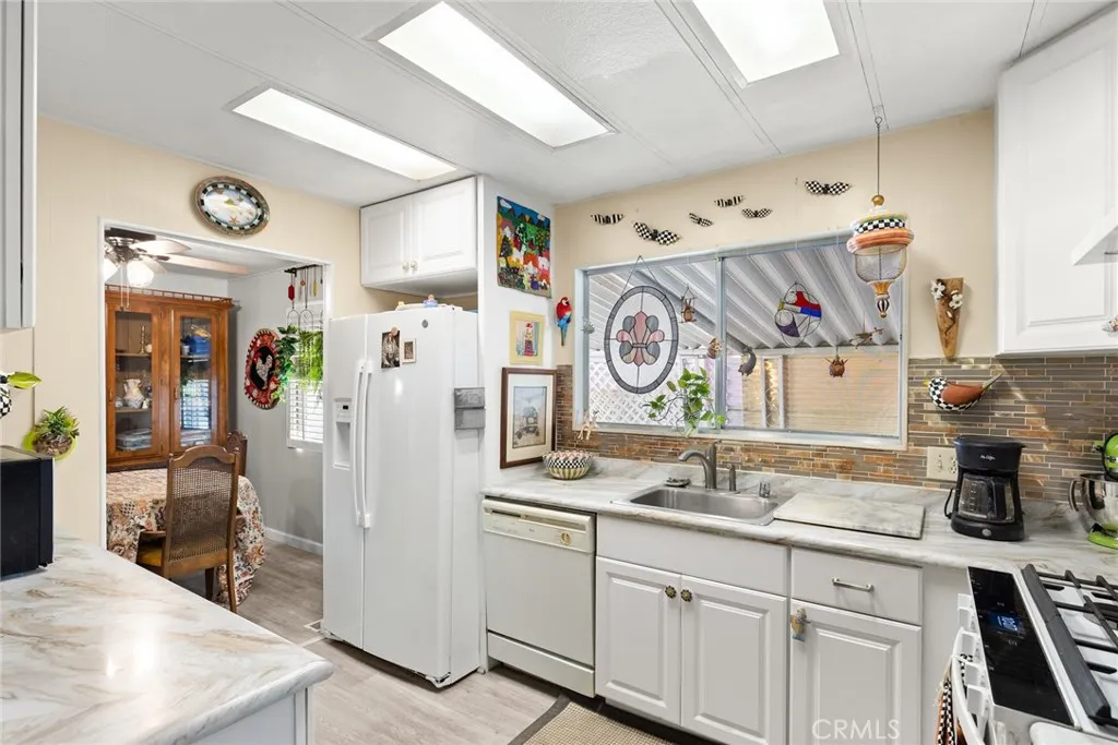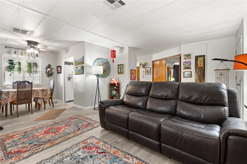 Welcome to this spacious and beautifully updated home located in the desirable Olive Hill Mobile Home Park. This home features a large, updated kitchen complete with a newer gas range, pot and pan drawers, beautiful countertops, a tile backsplash, and all appliances included. The layout offers two generous and separate living spaces, making it ideal for two people to live comfortably while enjoying their own private living and sleeping areas. The primary suite includes a walk-in closet and a spacious bathroom with a relaxing soaking tub and a separate shower. On the opposite end of the home, youll find a guest bedroom and bathroom that provide added privacy for visitors or roommates. An indoor laundry room offers plenty of storage and comes equipped with a washer and dryer. Throughout the home, you'll find abundant storage, including a built-in cabinet in the dining area, extra cabinetry in the laundry room, and storage space off the family room. You will also appreciate the newer laminate flooring throughout. Outside, enjoy a covered front porch perfect for relaxing, a shed for additional storage, and a carport large enough to fit two vehicles. The Olive Hill Mobile Home Park offers a range of amenities, including a swimming pool, garden space, recreation hall, gym, community activities and RV/boat parking available for an additional fee. This move-in ready home combines comfort, functionality, and community livingdont miss your chance to make it yours.