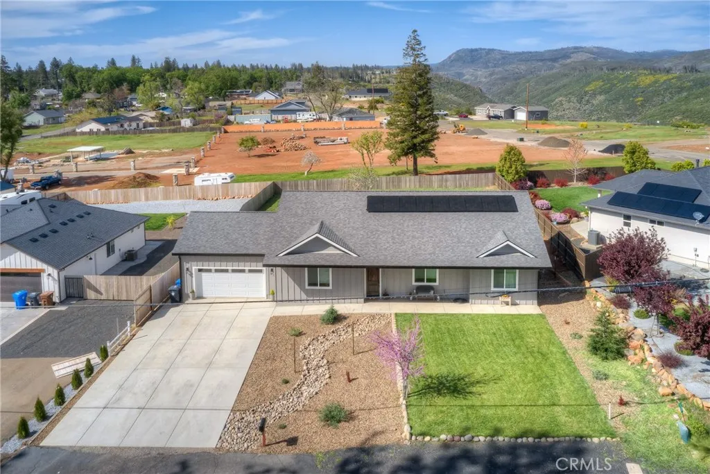 Welcome to your new home on the east side of Paradise, near the West Branch of the Feather River Canyonwhere life slows down, neighbors still wave, and adventure is never far. Tucked in a solid neighborhood off Pentz Rd with wide streets and new construction all around, this nearly new home is one of the only 4-bedroom homes in Paradise priced under $500k. The smart split-bedroom floorplan gives you privacy and flexibility, featuring two primary suitesone on each end of the homeplus two more bedrooms and three full bathrooms in total. Whether you need space for guests, a home office, or hobbies, this layout delivers. Inside, tall ceilings and an open living area create a bright, inviting feel. The kitchen is a standout with its large island, full pantry, and plenty of storage. Step outside and the backyard opens up to distant views of Sawmill Peak, the perfect backdrop for a quiet morning coffee or unwinding at sunset. With solar already in place and front and back landscaping complete, this home is both efficient and move-in ready. Just a short drive takes you to Lime Saddle Marina and all the recreation the Ridge is known for. Come see why this home is not just a great valuebut a rare find in Paradise.
