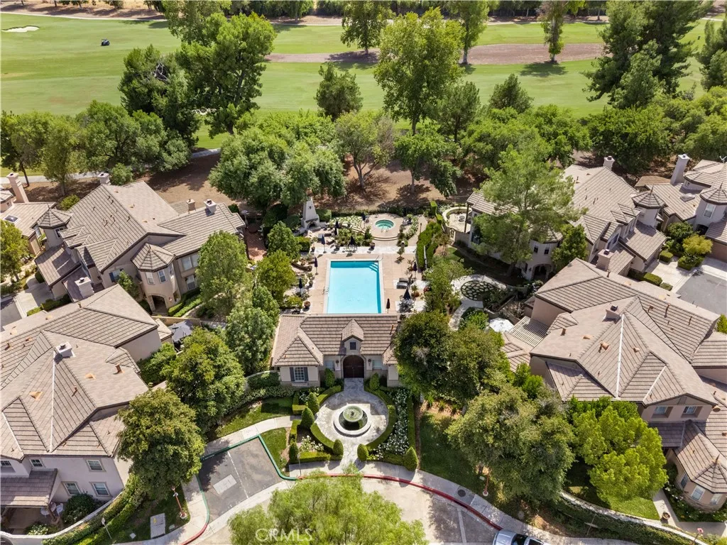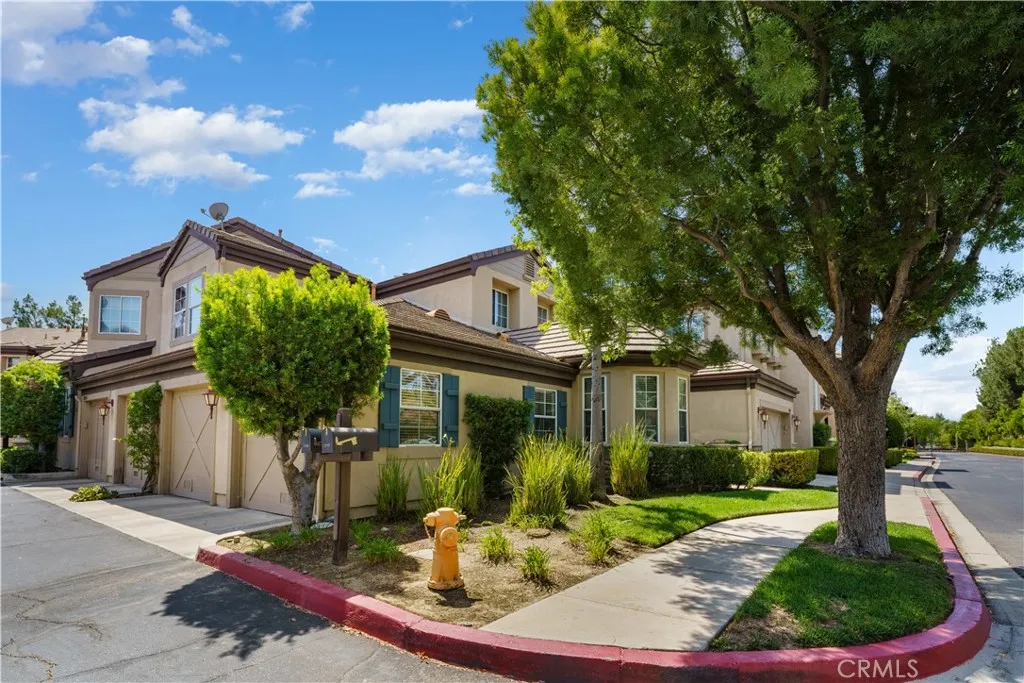 Welcome to the prestigious gated community of Avignon, where elegance and convenience come together. This stunning 2-story end unit home offers 2 bedrooms, 3 bathrooms, and a spacious loft with a highly sought after and unique layout. The primary suite is conveniently located on the first floor, complete with a cozy fireplace, French doors leading to the private patio, and a luxurious en-suite bathroom. Upstairs, youll find another bedroom, a full bathroom, and a massive loft that can easily serve as a second living space, office, or even be converted into an additional bedroom. Inside, youll love the beautiful porcelain floors throughout, a chefs kitchen with granite countertops, backsplash, and a large eat-in dining area. Natural light floods the open layout, enhancing the warmth and elegance of this home. Enjoy gorgeous views of the Valencia Country Club and lake from this exclusive enclave. Perfectly situated in the best school district and just minutes away from Valencias finest dining, shopping, and entertainment this home truly has it all.