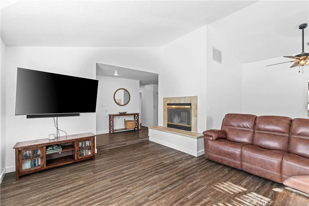 Welcome to this beautifully updated single-story home on a quiet cul-de-sac in North Merced. Offering 3 bedrooms, 2 bathrooms, and approx. 1,665 sq. ft., this home features fresh upgrades including new ceiling fixtures, dual-pane windows throughout, a newer A/C unit, and water heater. The spacious living room includes vaulted ceilings, abundant natural light, and a dual-sided fireplace that also warms the dining or family room. The bright kitchen offers white cabinetry, tile counters, breakfast bar seating, and stainless-steel appliances- stove, microwave & dishwasher. The primary suite has vaulted ceilings and an ensuite bath with tile counters & shower stall. Additional highlights include updated flooring throughout and an inside laundry area. The private backyard offers a patio, lawn, and garden beds perfect for entertaining or relaxing. Conveniently located near Merced College, UC Merced, Mercy Medical Center, shopping and parks. Move-in ready and full of modern touches!