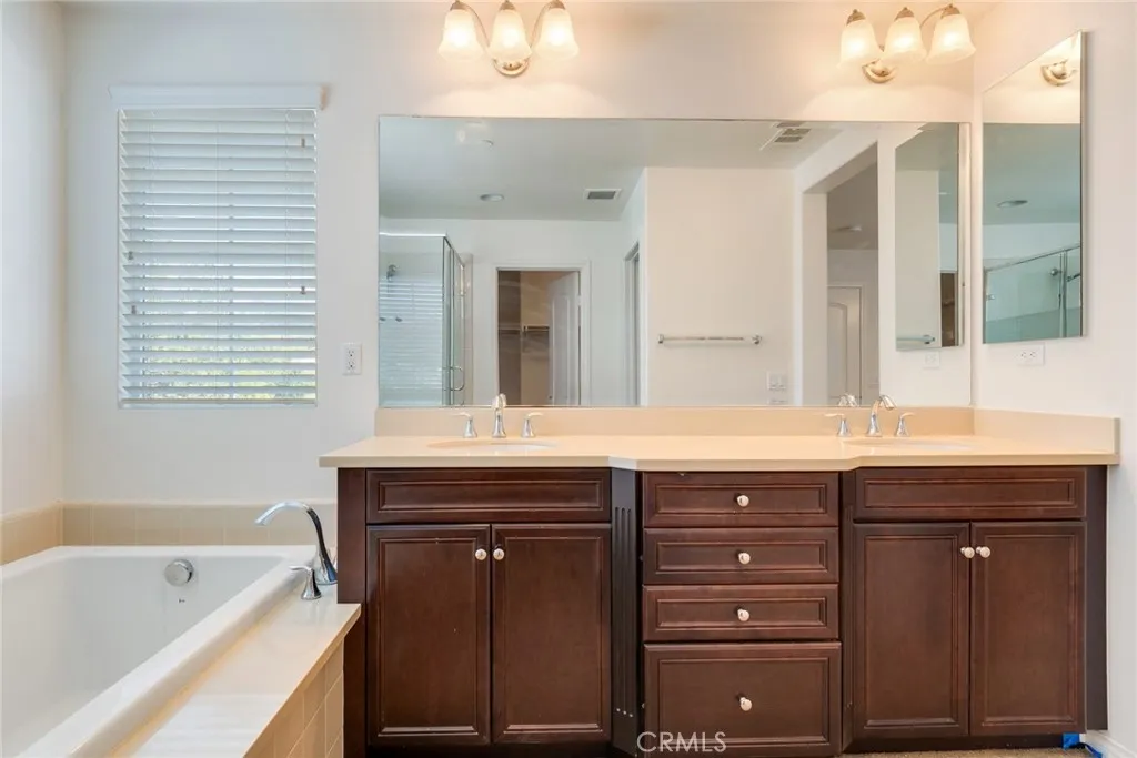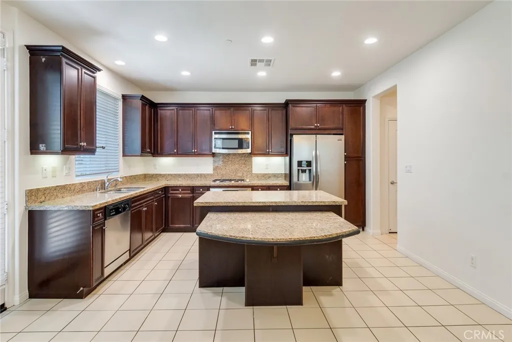 This stunning two-story home is located in the highly desirable and scenic Serrano Community. Recently refreshed with new interior paint, this modern residence features 3 spacious bedrooms and 2.5 bathrooms. Step inside to a bright, airy living room that flows into an open floor plan, connecting to a generous dining area and an upgraded kitchen. The kitchen impresses with rich dark wood cabinets, stainless steel appliances, a stylish two-level granite countertop and a walk-in chefs pantry.Upstairs, you'll find three great size of light filled bedrooms which is including a luxurious primary suite. The primary bathroom offers dual sinks, a relaxing soaking tub and a separate shower. The spacious indoor laundry room adds convenience with ample storage space. Additional highlights include a two-car attached garage with direct access, a downstairs guest bathroom, water softener and a tankless water heater. The beautifully landscaped backyard features a grape trellis and fruit treesperfect for outdoor entertaining or relaxing evenings. Community amenities include barbecue grills, picnic tables, an outdoor fireplace and a kids' playground, providing great outdoor entertainment fun for families. Conveniently located near schools, shopping centers, markets, parks and with easy access to Freeway 210, this home offers the perfect blend of luxury, comfort and accessibility.