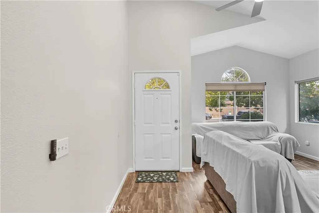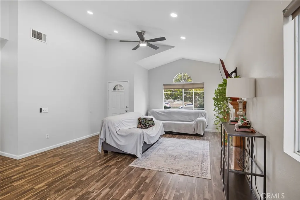 Step inside this welcoming 4-bedroom, 2-bathroom home in San Jacinto and instantly feel at home. The living room greets you with high ceilings, newer laminate floors, and a cozy fireplace, perfect for gathering with family and friends. The bright, all-white kitchen is the heart of the home, featuring a large island with modern lighting, recessed fixtures, and an upgraded stoveideal for both everyday meals and special occasions. The master suite is your private retreat with a walk-in closet, dual sinks, soaking tub, and separate shower. Each room offers comfort and space, while upgrades like newer window shades and fresh touches throughout make the home move-in ready. Out back, enjoy evenings under the new patio cover with extended concrete, added in 2023perfect for BBQs and weekend fun. Conveniently located near parks, schools, shopping, and walking paths, this home truly blends comfort with lifestyle.