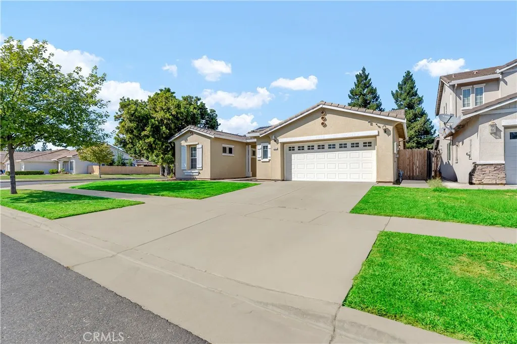 Step inside and feel the warmth of this inviting single-story home in North Merced. Desired split floor plan where every detail has been designed for both comfort and style. An open-concept floor plan creates the perfect flow between living, dining, and entertaining. The living room welcomes you with a cozy fireplace and abundant natural light, while the kitchen complete with a large center island and quartz countertops is ready for your favorite meals and gatherings. The private primary suite offers a relaxing retreat with a soaking tub, separate shower, and dual sinks. Outside, the backyard patio is ideal for weekend BBQs, morning coffee, or simply unwinding at sunset. Upgrades tie it all together, including owned solar, new HVAC unit, fresh interior paint, new quartz countertops and backsplash, new light and plumbing fixtures, Moen Flo smart water shutoff system, new blinds, hardware, and baseboards. This move-in ready home blends efficiency, style, and everyday livability truly a place to call home.