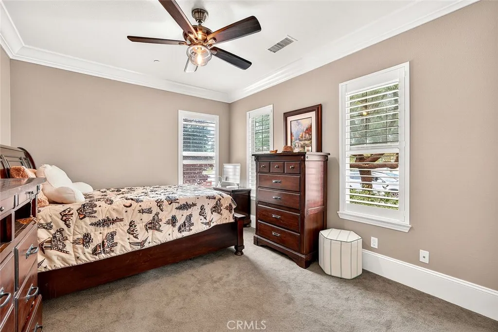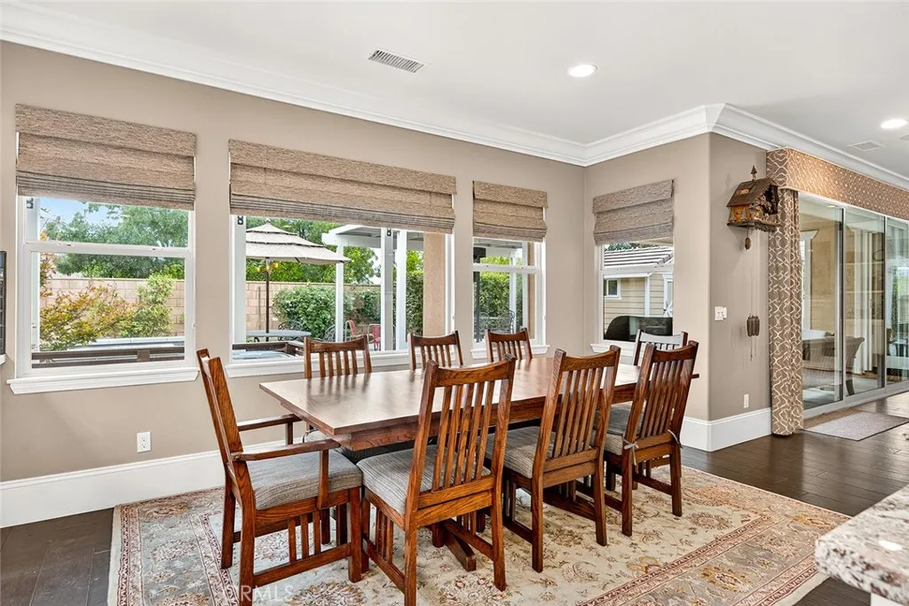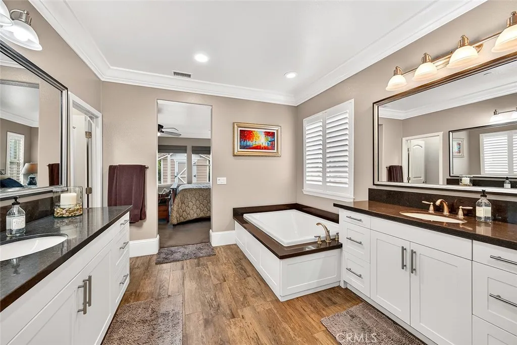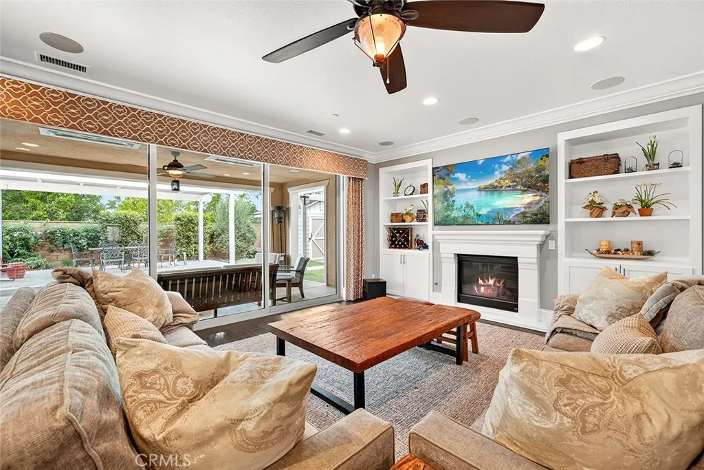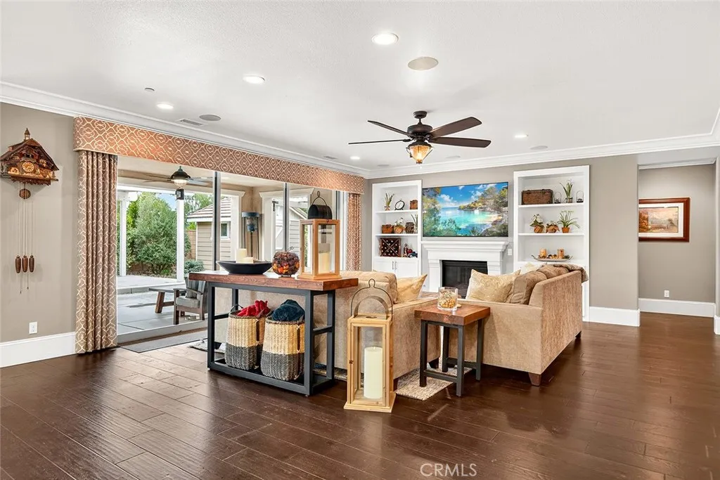 **Single Story Beauty with extensive upgrades in the highly desired community of Heritage Lakes** Open the door to the courtyard and step into this stunning 4 bedroom, 2.5 bathroom, single-story home where style meets functionality. The open great room floor plan is enhanced by the hardwood floors, wood-look tile in the bathrooms, laundry, and the custom crown molding and baseboards throughout. The neutral colors enhance the calming flow. Spread out over 2,785 square feet. This home exudes warmth and sophistication. The kitchen is a chef's dream with a large island, double ovens, beautiful backsplash, and high end cabinetry. Enjoy cozy evenings in the living area with custom built-ins flanking the fireplace. You will appreciate the seamless indoor-outdoor living provided by the California room slider doors. The outdoor space is an entertainer's dream. Listen to the water feature, sit around the firepit, truly relax in a low maintenance yard that's there for you. Thoughtful upgrades inside and out include custom light fixtures, fans, and heaters built into the patio ceiling for year round comfort. Car enthusiasts and organizers alike will appreciate the 3 car tandem garage with New Age Pro Series cabinets and a durable epoxy floor finish. This home is truly turnkey with every detail considered from the front to the back. The unbelievable amenities in Heritage Lakes include two pool areas, multiple parks, walking trails, a lake, and a great community center. With all this home has to offer, don't miss the opportunity to make this gem yours!