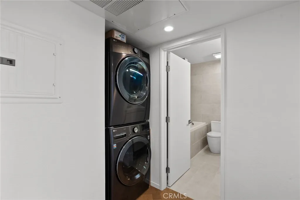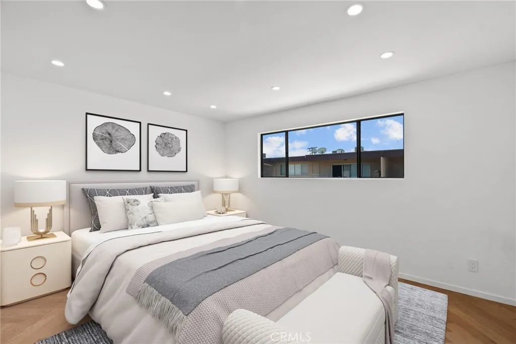 Remodeled Top-Floor 2-Bedroom Condo in Prime Glendale Location! The spacious 2-bed, 1-bath condo (1000 sq. ft.) has been beautifully redesigned and remodeled with high-end finishes. It is centrally located in one of Glendales most desirable neighborhoodswalking distance from The Americana at Brand, Brand Boulevards vibrant shops, Whole Foods, Erewhon (coming soon), cafes, restaurants, and easy freeway access. Light-Filled, Private, and Move-In Ready. Set on the top floor, looking onto the courtyard it is an oasis of calm and serenity in an urban environment. The single-level home (accessible by elevator or stairs) is bathed in natural South light, filtering in through expansive sliding glass doors off the living room that open to a private balcony. Step inside to discover a modern, designer interior featuring: elegant herringbone Hickory wood floors, modern recessed lighting and controllers, fresh new paint, woodwork and hardware throughout. A fully remodeled kitchen with new soft-close cabinetry, leathered quartzite countertops, designer hardware, and high-end appliances including a Bosch gas range, panel-ready dishwasher, and Fisher & Paykel stainless steel refrigerator. Elegant Bathroom & Functional Comforts. The spacious luxurious bathroom with floor to ceiling tile is a retreat, boasting a soaking tub, separate standing shower, and floating vanity with mirrored cabinet and Delta fixtures. Enjoy year-round comfort with central air and heat, plus the convenience of an in-unit LG washer/dryer (included). The primary bedroom features a large double row walk-in closet with