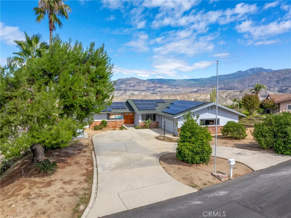 Welcome to 26320 Rim Road, a single-story retreat in the scenic community of Sprague Heights that offers panoramic views and ultimate privacy. Resting on a generous .67-acre lot, this 3 bedroom, 2 bathroom home blends comfort, function, and lifestyle in one inviting package. As you step inside, youll be greeted by a spacious living room with two large sliding glass doors that frame sweeping vistas. The kitchen features oversized windows that showcase the hillsides and valleys, filling the space with natural light and endless scenery. The backyard is truly the highlight of this property. An in-ground pool takes center stage, perfectly positioned to overlook the stunning views and offering a private resort-like atmosphere. A covered patio provides shade for gatherings and relaxation, while the surrounding landscape includes mature fruit treesorange, lemon, Meyer lemon, and lime. Additional features include an extra-large garage with a built-in workbench, a large storage shed, and the benefit of solar efficiencysellers typically receive an annual credit from Edison. Located near Soboba Casino, Diamond Valley Lake for boating and fishing, and numerous hiking trails, this property is close to recreation while maintaining a peaceful setting. Approximate drive times: 86 miles to Los Angeles, 74 miles to San Diego, 60 miles to Oceanside, and 42 miles to Palm Springs.