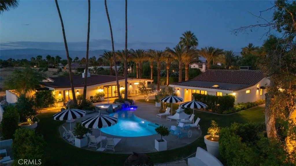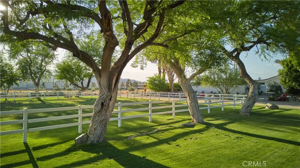 Exclusive Historic California Ranch Estate with Panoramic Mountain Views! Behind private gates and past a charming horse corral, sits this extraordinary California ranch home that offers a rare blend of privacy, luxury and location. This "turnkey" property is a short walk to the iconic Empire Polo Grounds, home of the world-famous Coachella Music Festivals and to the area's local shopping and dining. At the heart of the estate is a 2500 sq ft elegant one-bedroom main residence. A separate five-bedroom, five-bathroom guest house with a large central living room and a kitchenette offers spacious accommodations for family and guests, creating a private, resort-like retreat ideal for entertaining or serene desert living. Both the main house and the guest house were taken down to the studs and completely rebuilt to the highest standards. This estate blends classic California ranch style with modern comfort, featuring airy, open living spaces and exceptional attention to detail throughout. There is a bonus room, the walk-out basement under the guest house that could be used as an office or a massage room. The home and the separate five-car garage are set on two beautifully landscaped acres. This property boasts breathtaking views of the Santa Rosa Mountains of La Quinta and to the north, the expansive peaks of Joshua Tree National Park. Whether day or night, the surrounding natural beauty creates an awe-inspiring backdrop to daily life. Offering both seclusion and convenience, this prime location provides easy access to the best of the Coachella Valley and surrounding cities, all