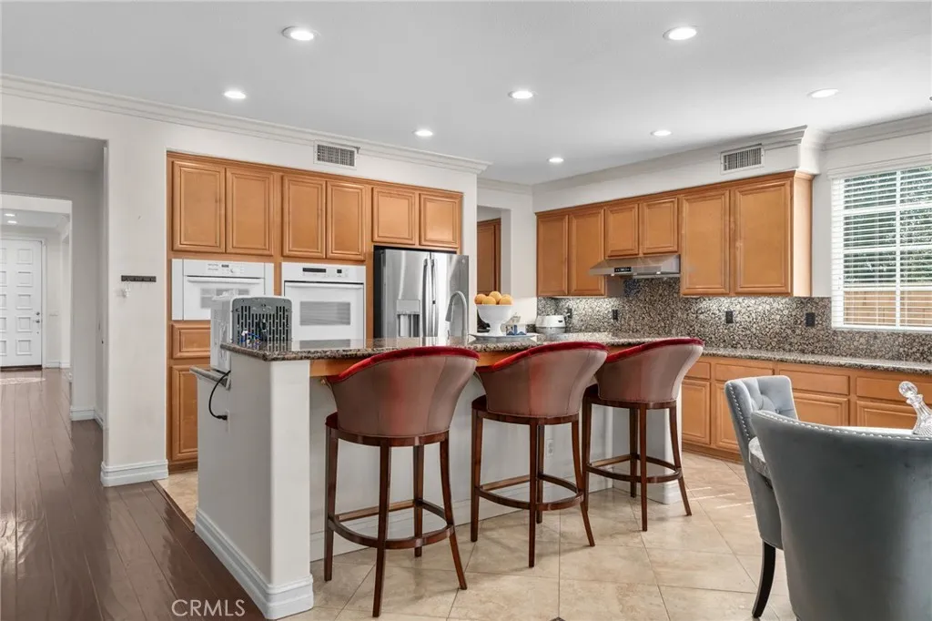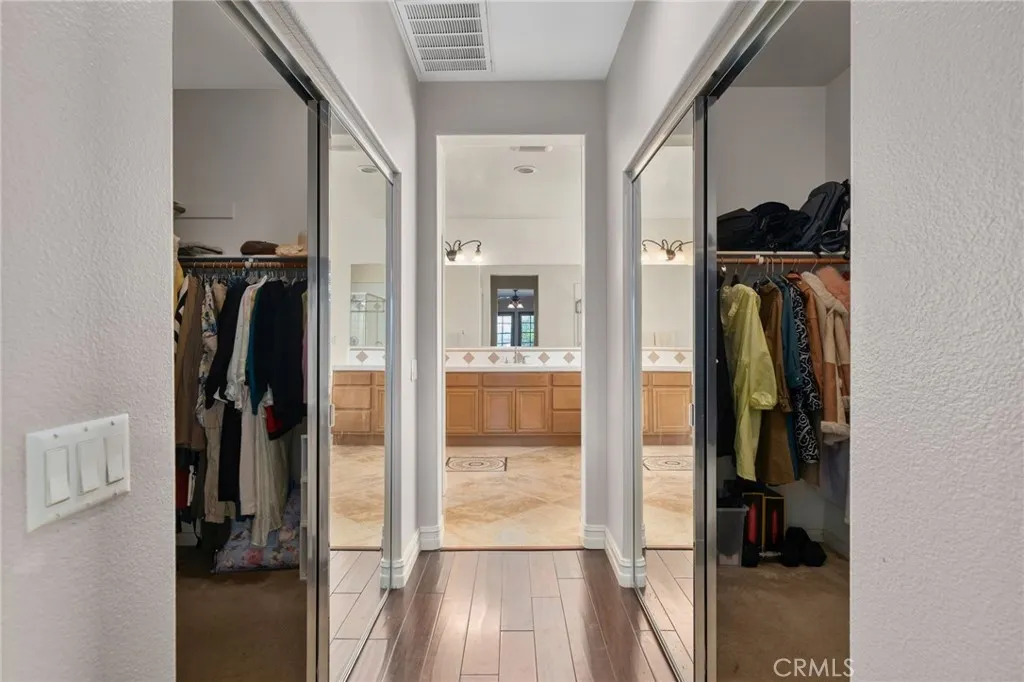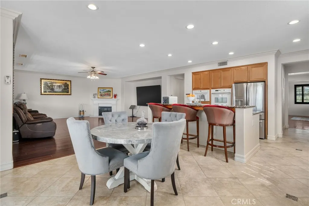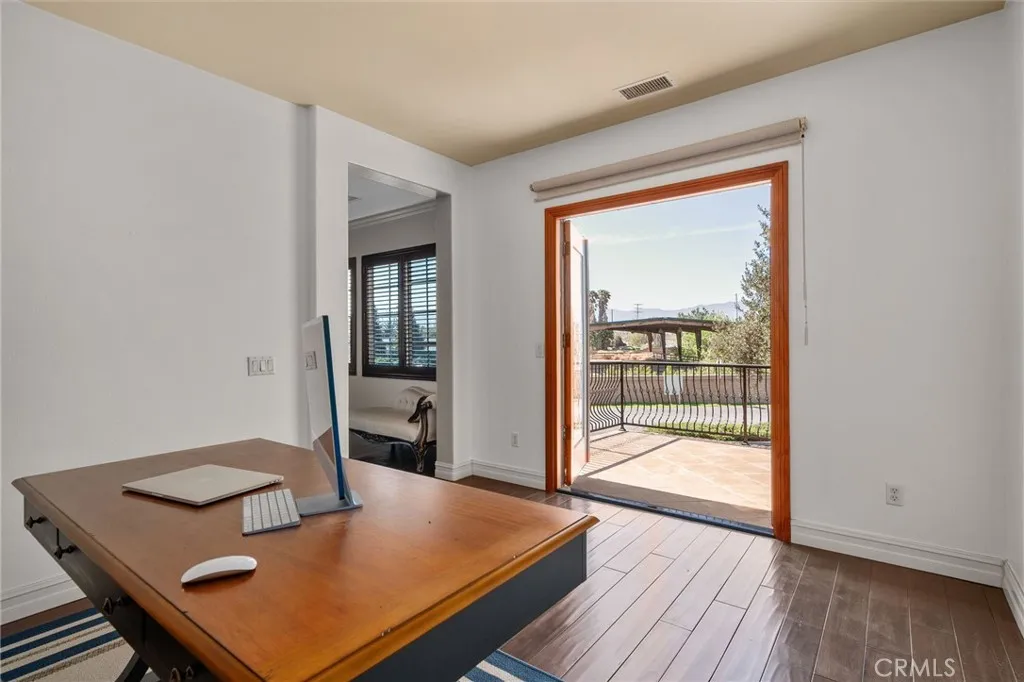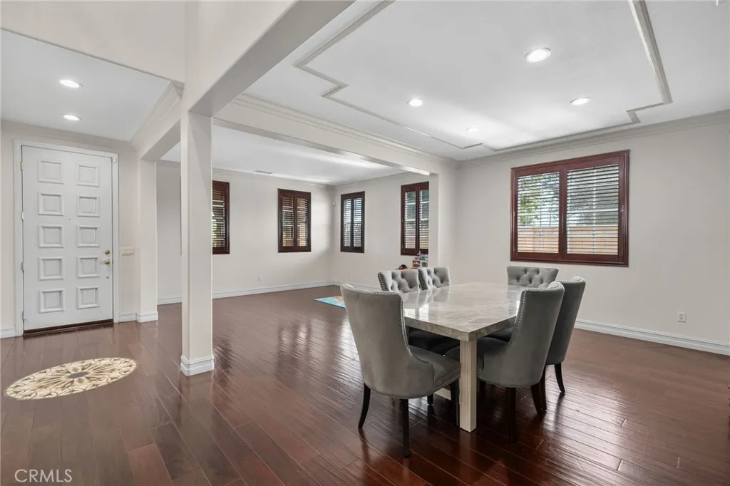 Welcome to this stunning, turnkey, one of a kind home located in the highly sought-after River Glen community of Eastvale. Situated on a spacious 13,068 sq. ft. lot at the end of a peaceful cul-de-sac, this well-maintained residence offers a blend of elegance, comfort, and practicality. With 5 bedrooms, a loft, and 4.5 bathrooms, this home is designed for family living and entertaining. The grand entrance features a circular driveway with a beautiful fountain, providing additional parking for over 8 cars alongside the 4-car garage, totaling over 12 parking spaces! The front yard is beautifully landscaped and securely gated with a combination of block and wrought iron fencing, creating a private oasis with stylish light fixtures and an automatic gate for added security. Relax and enjoy breathtaking views of the city lights and surrounding hills from the custom, oversized balcony and patio, perfect for outdoor gatherings. The backyard is designed for easy maintenance, featuring artificial grass, and offers ample space to build a pool, allowing you to customize your outdoor retreat. Inside, you'll find real wood flooring throughout, complemented by crown molding and plantation shutters on every window. The open-concept living areas are ideal for entertaining, while the spacious primary suite offers a relaxing sanctuary with a cozy sitting area, private balcony, a soaking tub and separate shower, and 2 separate, generous walk-in closets. The downstairs suite has its own en suite bathroom, separate from the guest bathroom. Additional highlights include a convenient upstairs laun
