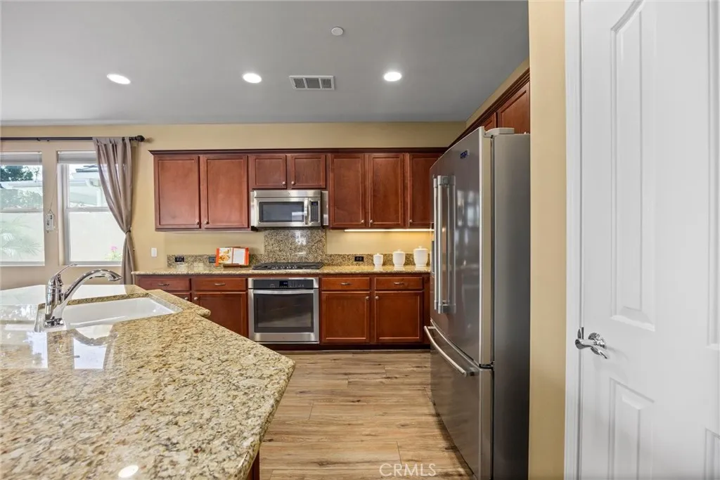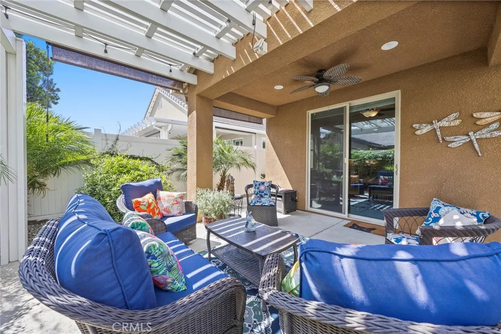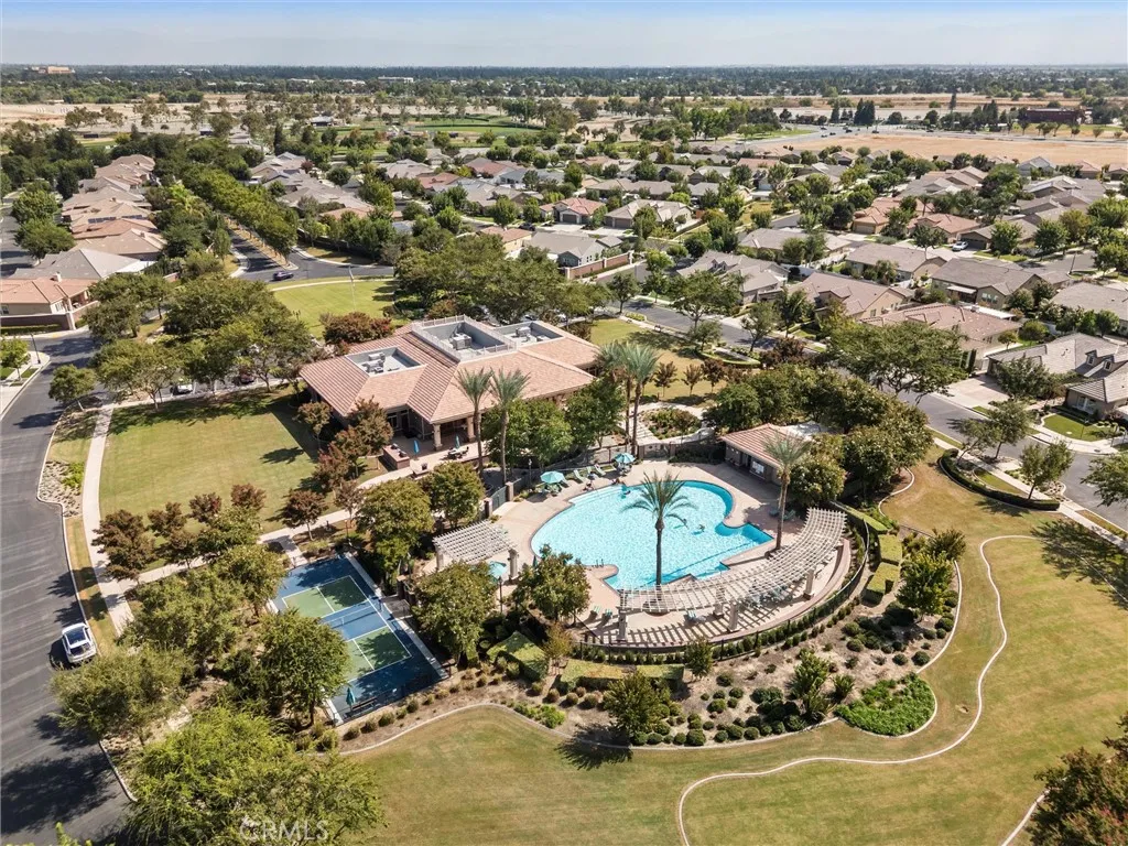 Welcome to this beautifully maintained home located in the sought after 55+ gated community of Brighton Park. This 2B/2B split wing home plus an office delivers 1,585 sq. ft. of smart design and effortless comfort with low-maintenance living. The open floor plan includes durable wood-looking flooring, a spacious kitchen with granite counters, a large island with seating, stainless steel appliances, and rich cabinetry that flows into the dining and living rooms filled with natural light. The primary suite features dual vanities, a soaking tub, and a walk-in shower. A versatile office doubles as the ideal flex space for work, hobbies or guests. Enjoy year-round greenery with a turf front and backyard designed for easy maintenance and lasting beauty. In the backyard get away unwind or host gatherings beneath two pergolas, where lush landscaping and winding walkways set the stage for style and comfort. Enjoy resort-style living with a community pool, gym, clubhouse, and so much more!
