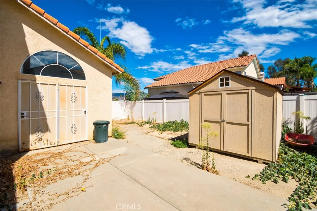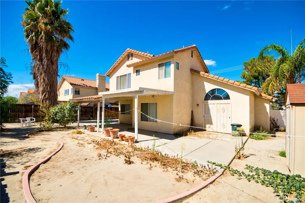 The 4 bedrooms & 3 full bathrooms home offers a desirable floor plan with 1 bedroom and 1 bathroom conveniently located on the first floor. The bright master suite upstairs includes a spacious walk-in closet. The living room features high ceilings that make the home feel open and inviting. The family room, located right off the kitchen, has a cozy fireplace, creating the perfect space for gatherings. The laundry room with a utility sink adds everyday convenience. Outside, youll find a large backyard with a storage shed and an area finished with decorative rock for easy maintenance. A 3-car garage provides plenty of parking and storage space.