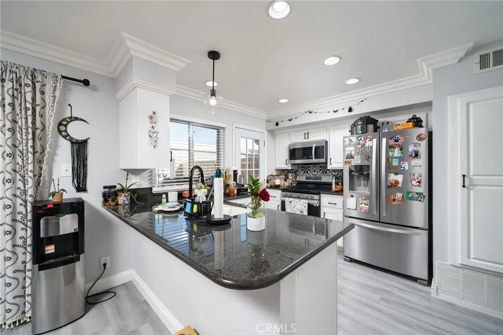Welcome to 1328 N Elderberry Ave, a beautifully updated townhome located in the heart of Ontario. This charming residence offers the perfect balance of comfort, style, and convenience, making it an excellent choice for first-time buyers, downsizers, or anyone seeking a low-maintenance lifestyle with resort-style amenities. Step inside to discover a bright and inviting living space with tasteful modern upgrades. The open floor plan features a spacious living room with recessed lighting, crown molding, and large windows that let in abundant natural light. The dining area connects seamlessly to the remodeled kitchen, which boasts granite countertops, white cabinetry, stainless steel appliances, and plenty of storageperfect for everyday meals and entertaining. Upstairs, youll find generously sized bedrooms with mirrored closet doors, ceiling fans, and updated finishes throughout. Bathrooms have been beautifully modernized with stylish vanities and fixtures. The private patio provides a perfect outdoor retreat for relaxing, gardening, or entertaining, and it conveniently leads to the two-car garage. While the garage does not have direct access from inside the home, the private patio between offers security and ease of entry. This well-maintained community enhances your lifestyle with a sparkling pool and spa, tennis courts, and landscaped greenbelts. HOA fees include water and trash service, providing excellent value and peace of mind. Ideally located near shopping, dining, schools, and major freeways, this home offers both comfort and convenience in one of Ontarios most desirab