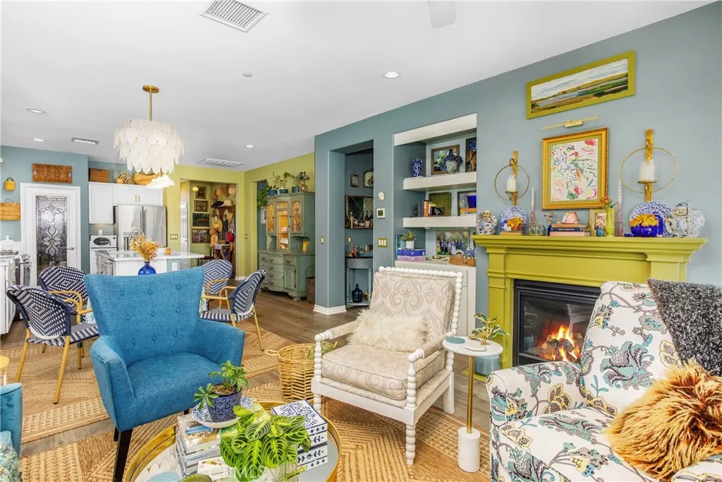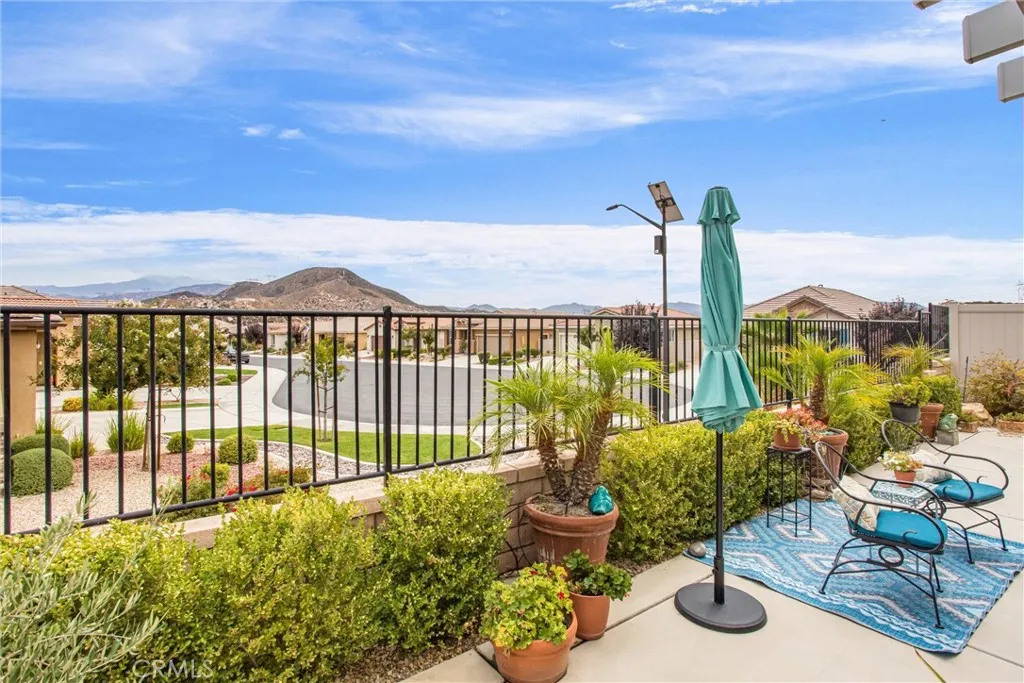 Welcome to this stunningly upgraded home in the sought-after K. Hovnanian Four Seasons community! This beautiful this Professionally designed single story residence offers 2 bedrooms, 2 bathrooms, and a private office with French doors. Perfectly positioned with unobstructed views of the Idyllwild Mountains and no neighbors directly behind, youll enjoy both privacy and breathtaking scenery. Step inside to discover an open-concept great room with a custom fireplace mantel and built-in niches, creating the ideal gathering space. The gourmet kitchen features Capistrano Shaker white cabinetry, quartz countertops and backsplash, upgraded GE Caf appliances (including refrigerator), under-cabinet lighting, and a beveled glass pantry door. The primary suite is a true retreat with a private door to the ensuite bath, a mirrored walk-in closet, and access to a covered patio. The guest suite offers its own direct bath access, while the office provides flexibility for remote work or hobbies. Notable interior highlights include: Beautiful laminate flooring in main living areas, with upgraded carpet in bedrooms & office Custom paint throughout Four-inch baseboards, beveled mirrored wardrobe doors, and upgraded light fixtures Flat panel/media connections in office, great room, and primary bedroom Home networking package, security system, and Ring doorbell Laundry room with sink and full cabinetry The exterior is equally impressive, featuring: Stone front elevation and upgraded coach lights Concrete back patio with trellis cover & lighting plus additional covered patio off the primary suite