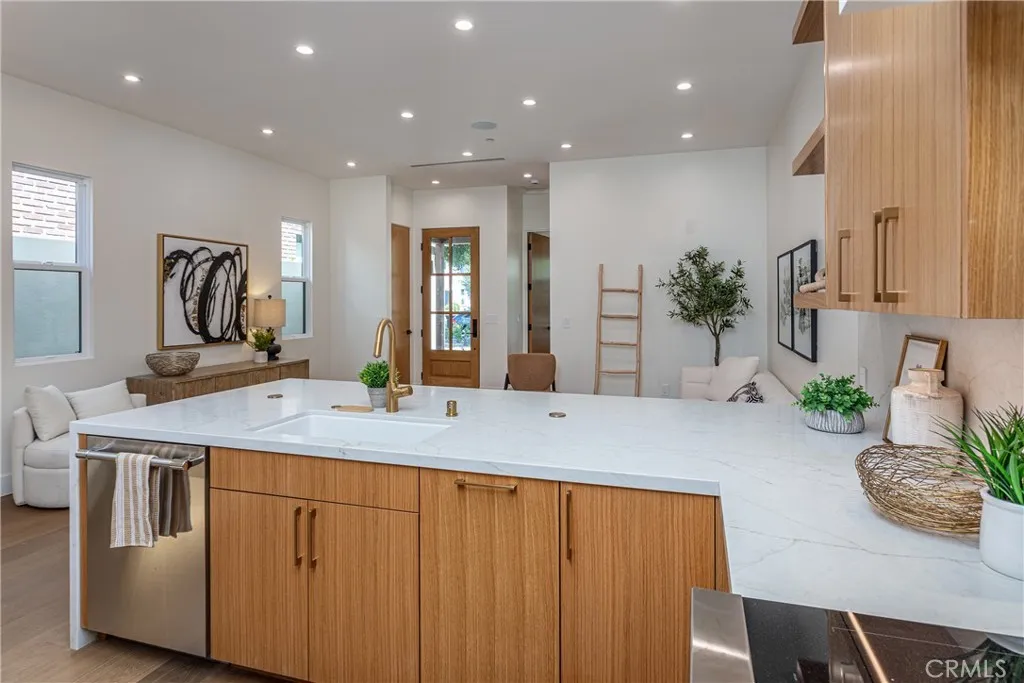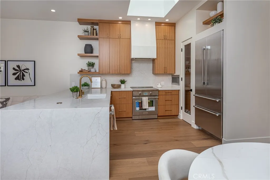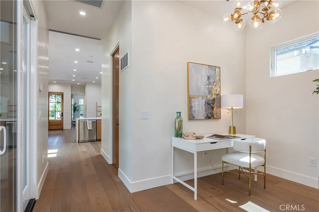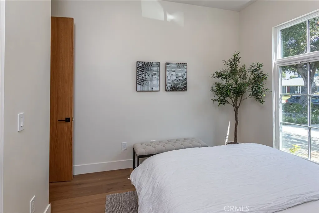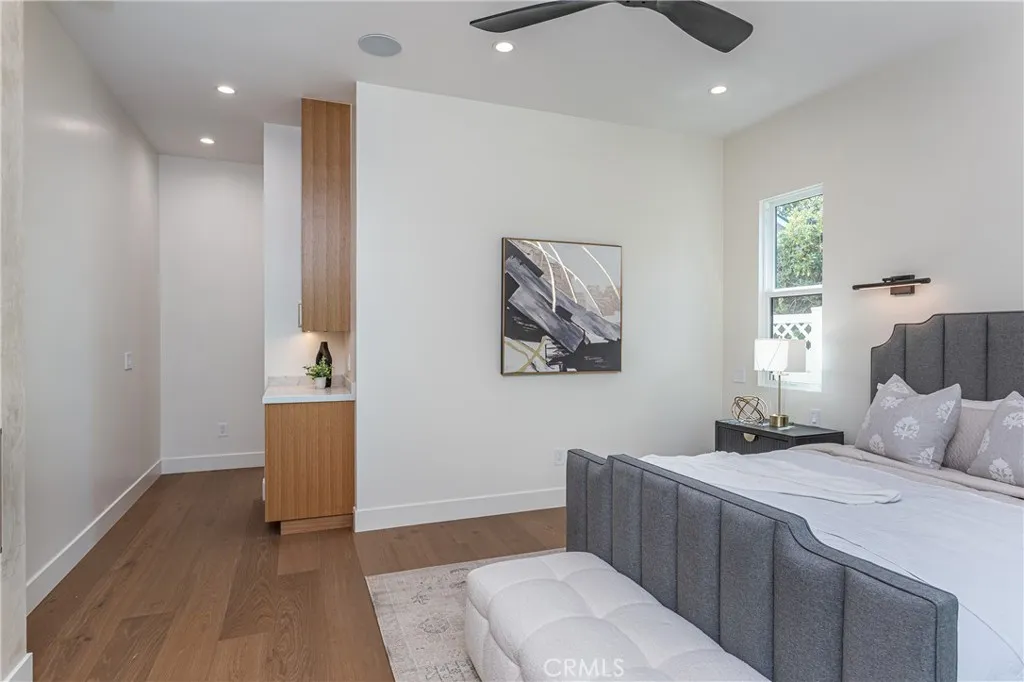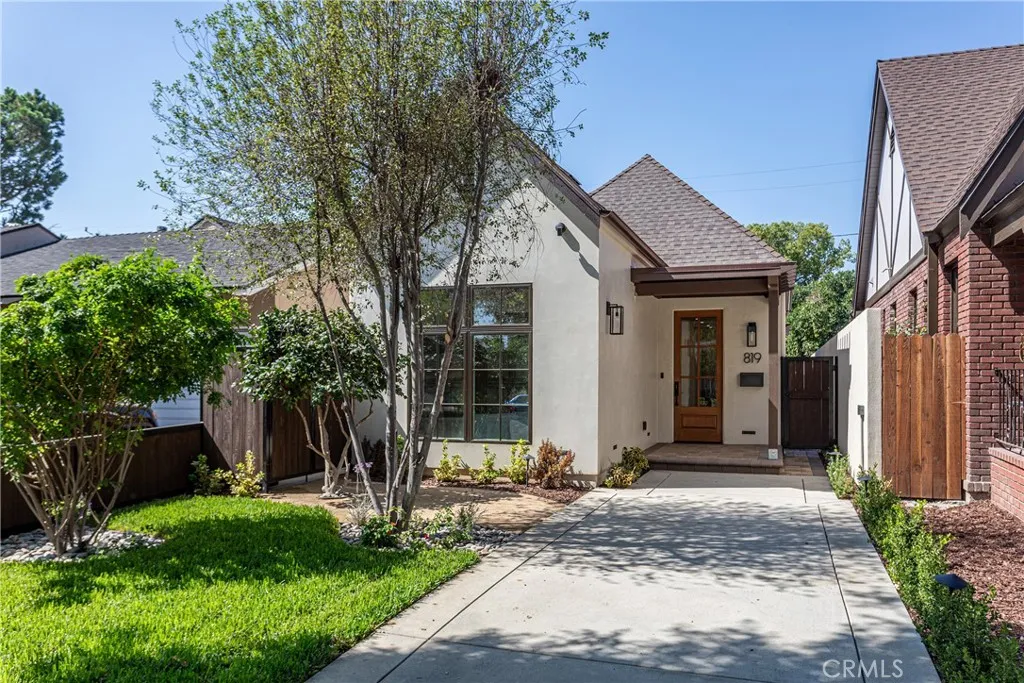 Welcome to 819 N Fairview, a rare and exceptional new build completed in 2025, offering the perfect blend of modern design, high-end finishes, and timeless comfort. Located in Burbanks highly coveted Magnolia Park neighborhood, this home is a showcase of thoughtful craftsmanship and refined detail. Step inside and be greeted by soaring 10-foot ceilings and 8-foot solid doors, creating an airy, open atmosphere filled with natural light. The heart of the home is the stunning chefs kitchen, equipped with Thermador appliances, including a professional-grade industrial range and a built-in refrigerator. A striking waterfall countertop island anchors the space, complemented by custom cabinetry that makes the kitchen as functional as it is beautiful ideal for both everyday living and entertaining. The open-concept living and dining areas flow seamlessly together with wide-plank engineered hardwood floors, combining warmth, beauty, and durability, all enhanced by abundant natural light. Sliding doors extend the living space outdoors to a private patio retreat, while a flex space adds even more versatility, perfect for a home office, creative studio, or reading nook. This single-level residence offers 2 spacious bedrooms and 2 designer bathrooms across approximately 1,350 square feet. The primary suite is a true sanctuary with a sleek modern fireplace, luxurious ensuite bath, generous closet space, and refined finishes that evoke both elegance and relaxation. Every detail from fixtures to flooring reflects the highest standard of new construction. Thoughtfully built for modern li
