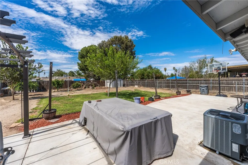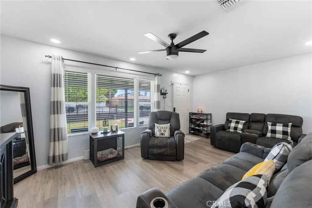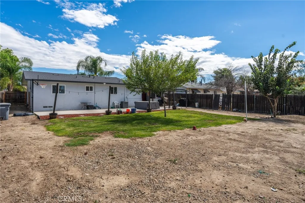 Turnkey, stylish, and full of potentialthis 2-bedroom, 1-bathroom Hemet home with 1,072 sq. ft. of living space is the perfect starter or downsizing home. The curb appeal immediately stands out with its gated driveway, modern fencing, lush green lawn, a newer roof (2 yrs old), and a cozy front porch that invites you inside. Step into the bright living room where updated flooring, recessed lighting, and a modern ceiling fan create a warm and welcoming atmosphere. The open layout flows effortlessly into the dining area and kitchen, which features white cabinetry, plenty of storage, and stainless steel/black appliances. Both bedrooms offer comfort with natural light, ceiling fans, and ample closet space. The bathroom has been tastefully upgraded with clean finishes. Thoughtful touches throughout the homefresh paint, central A/C, and updated design elementsmake it completely move-in ready. The backyard is a true highlight. With its large lot, youll have space for barbecues, gatherings, or simply relaxing under the pergola-style patio with string lights. Theres a grassy play area, fruit trees, and plenty of open yard for future projectswhether its adding a garden, workshop, or more. For added convenience, the back & front yards include smart irrigation. Located in a convenient neighborhood close to schools, shopping, dining, and commuter routes, this home delivers both comfort and potential at a fantastic value. Whether youre just starting out or looking to downsize, this Hemet gem is ready to welcome you home.