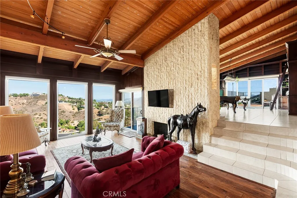 Jet liner views, mountain, valley and city lights. This six bedroom five bath pool home is located in close proximity to gate. Sage lane is one of the most beautiful streets in Guard Gated Bell canyon, located on a private and quiet cul-de-sac. Front of property features a large frontage with mature trees and landscape. Front yard is private and features large water fountain and slate flooring. Double door entry, living room with floor to ceiling glass jaw dropping views, stone fireplace. Kitchen with upgraded cabinets and countertops, island with WOLF range and hood ,built in kitchen table, SUB-ZERO refrigerator, Miele warming drawer, double oven, coffee/espresso machine, pull out spice rack, dumbwaiter, double dishwasher and door access to pool and BBQ area. Huge laundry room /walk in pantry with cabinets and storage. Family room/game room with glass walls, custom built ins ,most amazing views, fire place double glass doors leading to outdoor pool /entertaining space. Separate formal dining room .Built in bar with sink, storage, SUB-ZERO wine refrigerator. Main level guest bath with outdoor pool access Main level on suite with remodeled bathroom. Primary bedroom features walls of glass with amazing views, private deck ,walk in closet with organizers, original primary bathroom is huge ,needs updating but amazing potential .Four additional bedrooms with two baths. High ceilings, private decks, built in closets, built in bay window with seating area, amazing views from all room. This near 4000 sq foot home with over an acre of land is the best value in prestigious guard gate