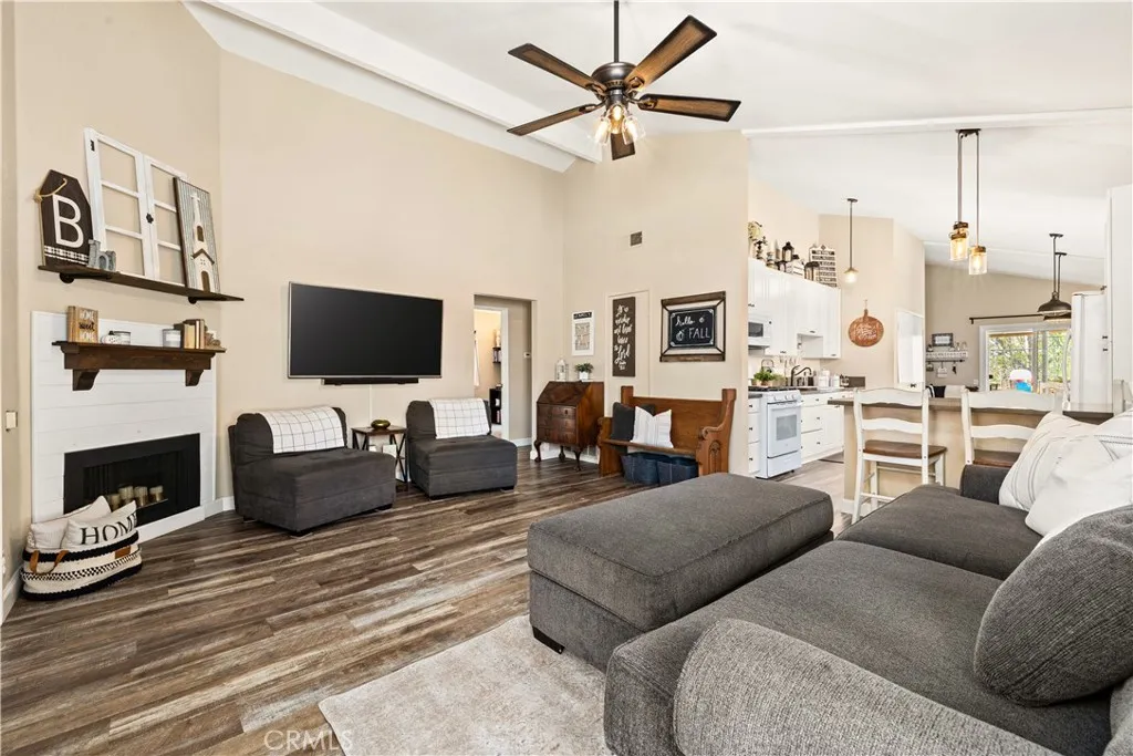This exceptional property, located in the heart of Mission Viejo, offers both privacy and a prime setting on a spacious view lot. Upon arrival, a charming white picket fence leads to the entryway. Inside, you are welcomed by stylish vinyl plank flooring and an open-concept layout. The upgraded kitchen features white cabinetry, a breakfast bar, and an in-kitchen dining area. The family room seamlessly extends to a private backyard designed for entertaining, complete with a covered patio, custom playhouse, and stunning sunset views. Boasting four bedrooms and two full bathrooms, and includes a comfortable primary suite with a sliding door that opens directly to the back patio area. The two-car garage is currently utilized as a gym and an additional playroom, providing versatile space for family needs. Residents will also enjoy access to Mission Viejos premier amenities, including lake access, boat rentals, concerts, and a variety of recreational activities. The home is truly Turn Key!
