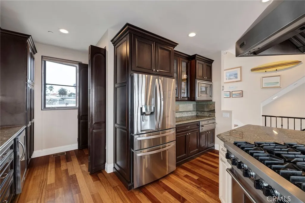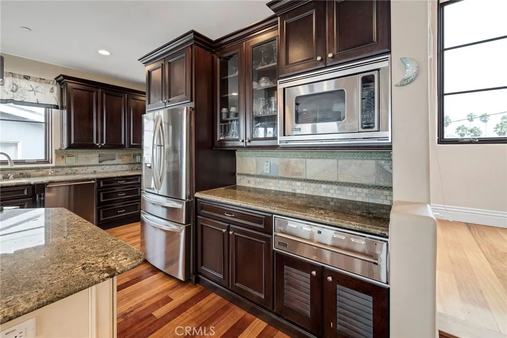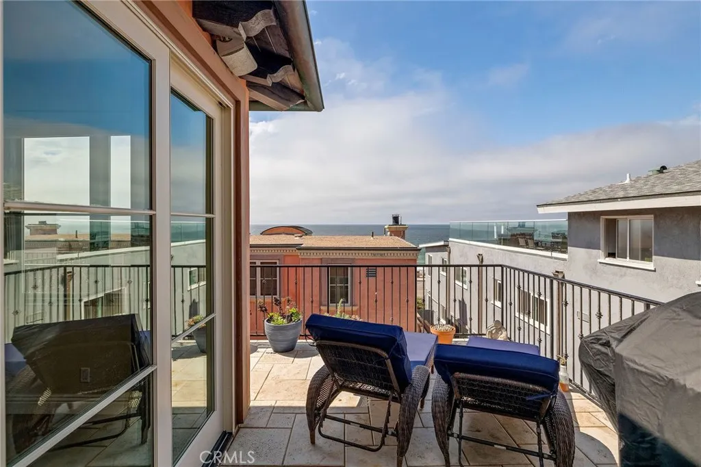 Set along the Esplanade, the ultimate address in Redondo Beach, this exceptional home combines the serenity of ocean views from the living space with the vibrancy of Riviera Village just moments away. A thoughtfully designed layout balances sophistication and privacy, beginning at the entry where the two car garage connects directly to the home along with a bedroom and full bath that can serve as a guest suite, home office, or private retreat. Continuing upstairs, the second level offers another bedroom with high ceilings, its own full bath, and a walk-in closet. The hallway leads to your expansive primary suite. Facing west, this tranquil sanctuary captures the sound of the ocean and features three closets including a walk-in. The ensuite bath is spa-inspired, finished in neutral stone with dual vanities, a soaking tub, and a separate shower. On the top floor, the main living area is highlighted by beautiful ocean views and natural lighting through large windows, with an open concept design that seamlessly connects the living and dining rooms to a chefs kitchen, complete with a center island and bar seating. Granite countertops, Viking stainless steel appliances, abundant custom cabinetry, and a wine fridge are ideal for preparing meals, entertaining guests, or simply enjoying the good life at the coast. The dining area opens to a wraparound balcony bringing in ocean breezes, more views, and extending the indoor-outdoor flow. Crowning the residence is your spacious rooftop deck with true 360-degree vistas, the Pacific and coastline to the west, Palos Verdes hills to the so