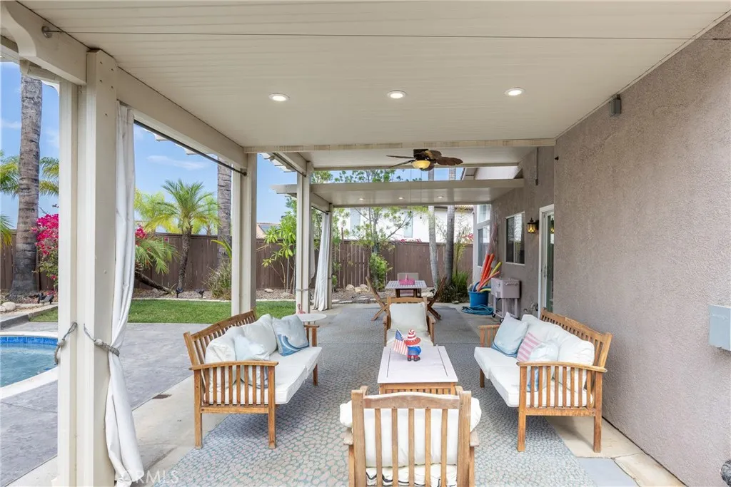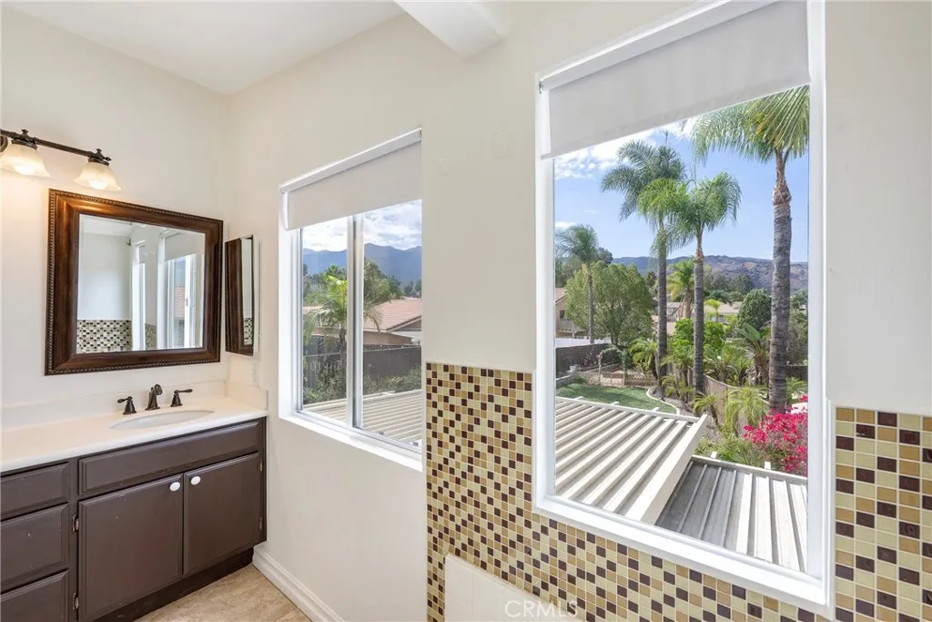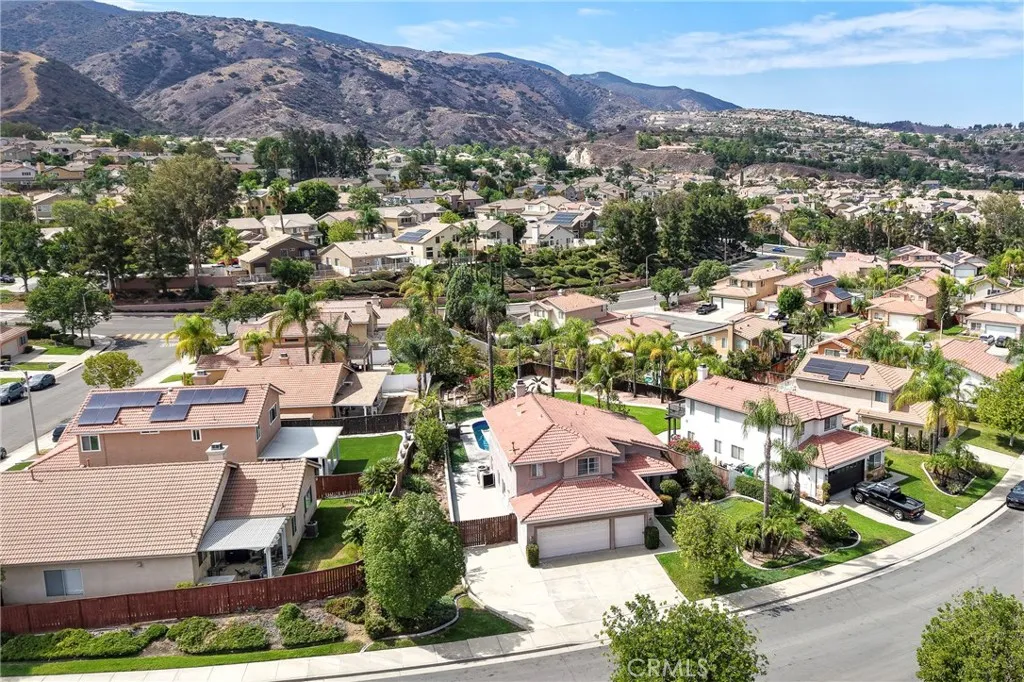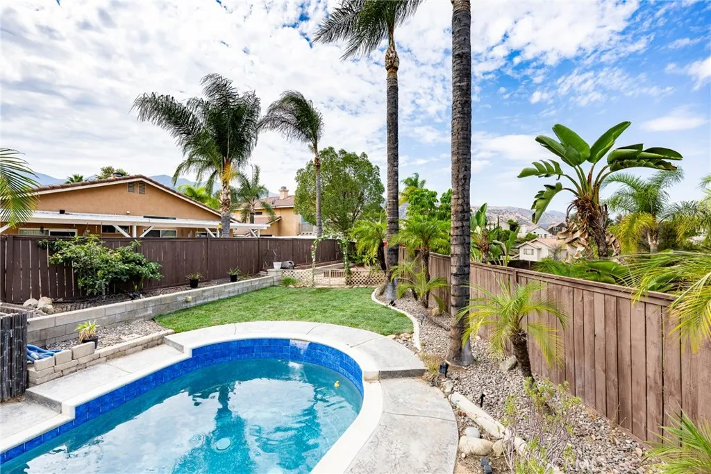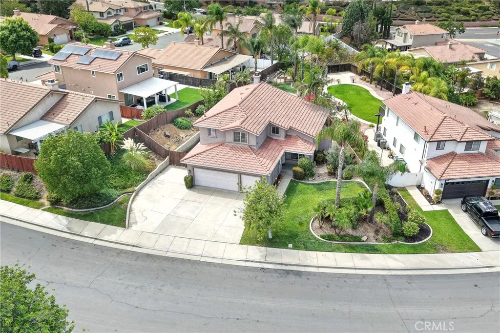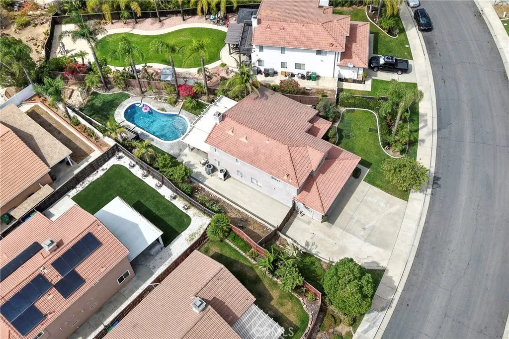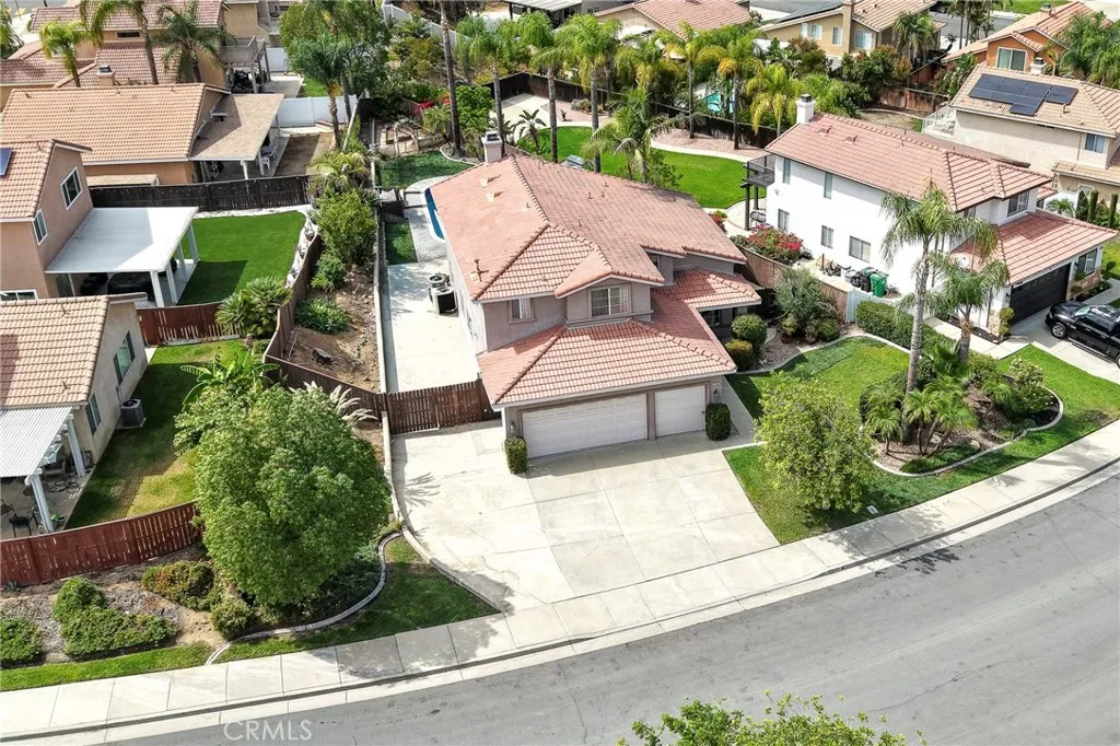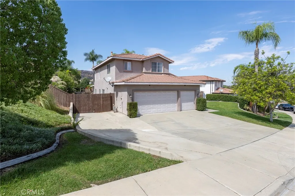 Your backyard retreat awaits! This unique pool home sits on one of the largest lots in the highly desired Wildrose Ranch community of Corona, where you have views of the Cleveland National Forest as a scenic backdrop. Featuring 4 bedrooms and 3 bathrooms (including a downstairs bedroom and bath)...its designed for both comfort and flexibility. Inside, youll find vaulted ceilings, laminate wood-like flooring in the formal living and dining areas, and a bright kitchen with granite countertops, abundant cabinetry, and a beadboard-accented island that opens seamlessly to the family room. Step outside to a backyard built for entertaining and everyday enjoyment. Take a dip in the sparkling pool, relax under the custom-built veranda, smell the summer barbecues, and enjoy the spacious grounds with garden space, RV parking, storage shed, and a variety of fruit and nut trees (lemon, lime, olive, almond, and dwarf apple) plus the incredible fragrance of the plumerias. Updates include HVAC, sliding glass doors, LED recessed lighting and complete home repiping for added peace of mind. With a 3-car garage, low HOA, low taxes, and top-rated schools nearby, this home is an incredible find. Conveniently close to Dos Lagos shopping, dining, entertainment, and local parks...there is no doubt you'll enjoy this home and make years of cherished memories here.