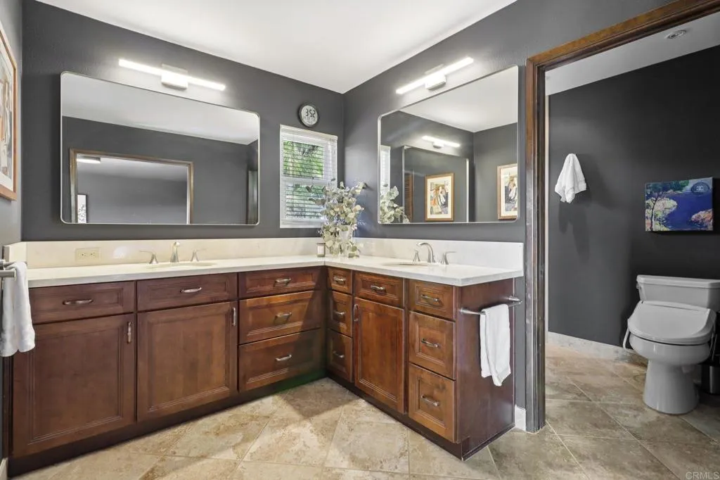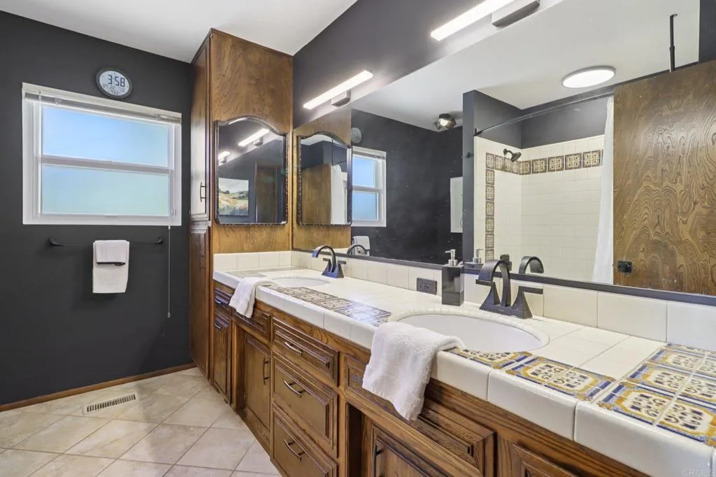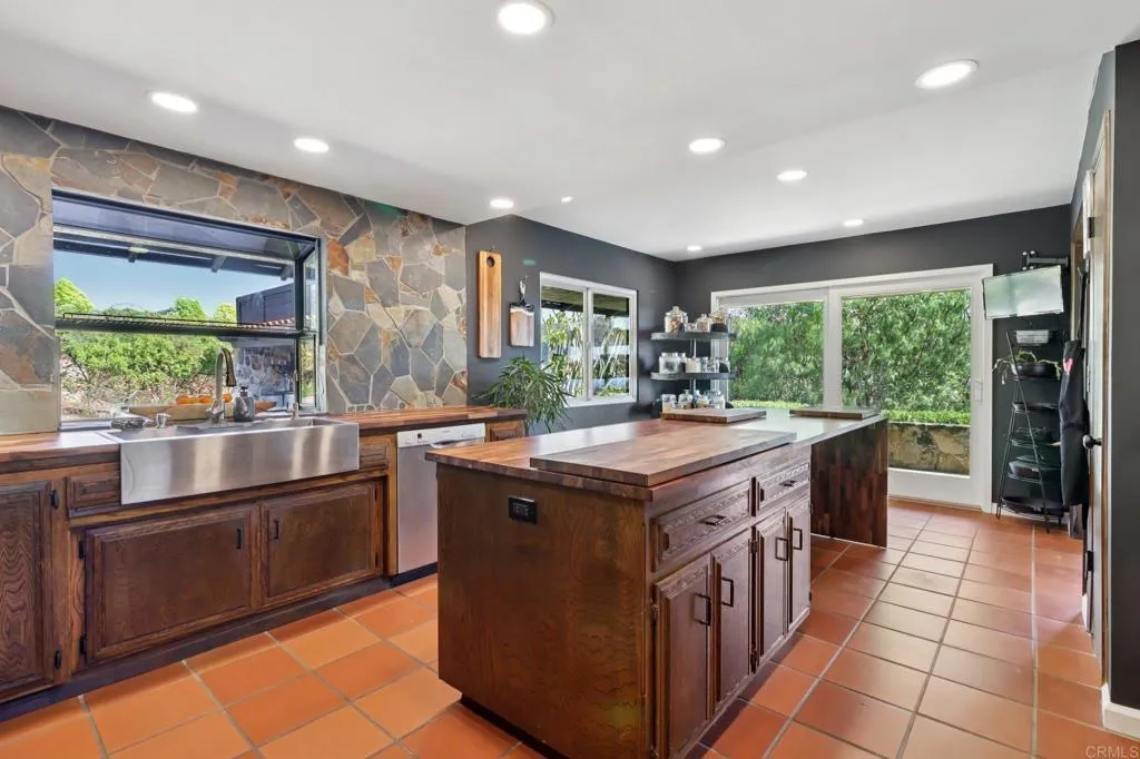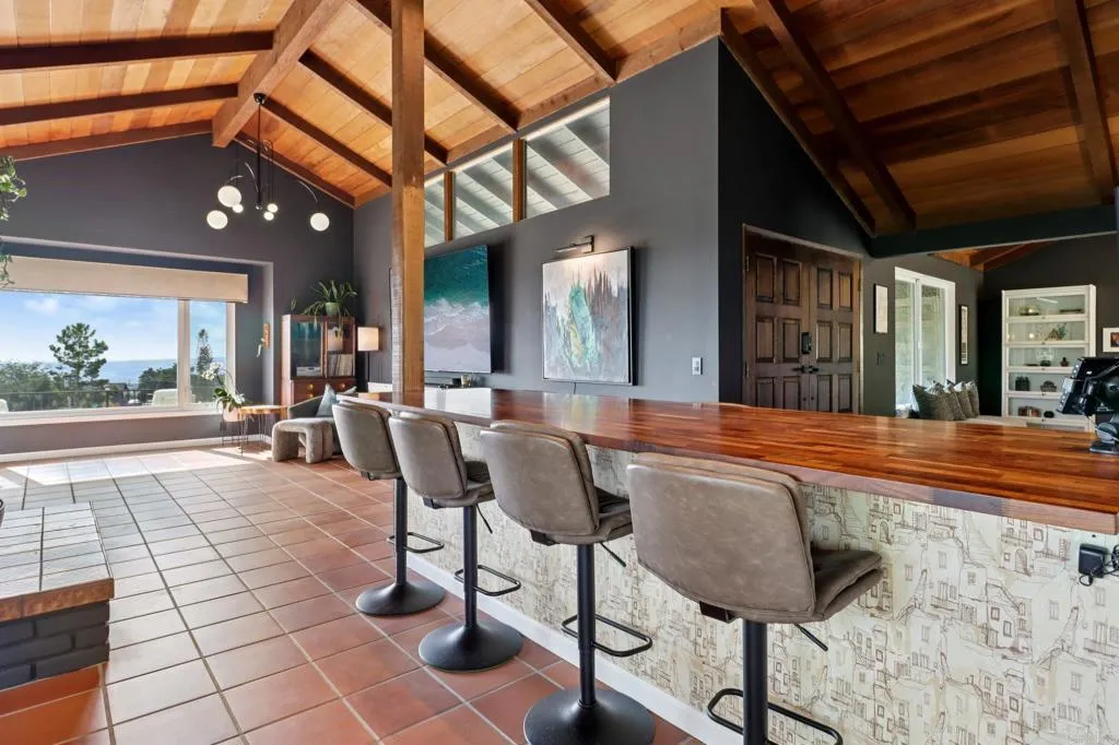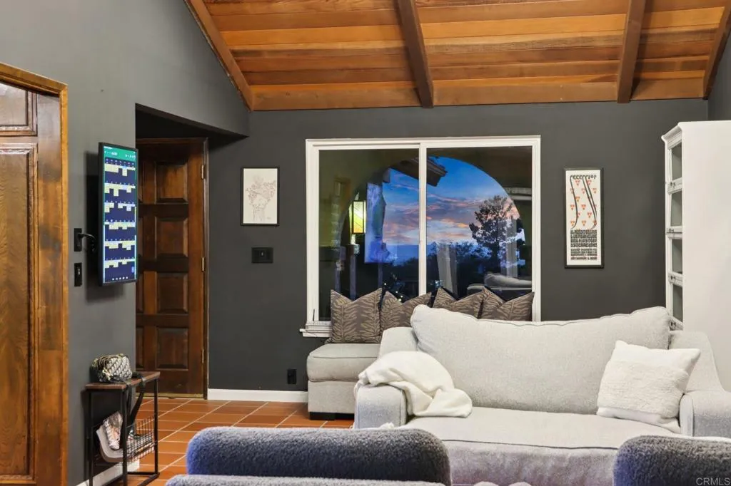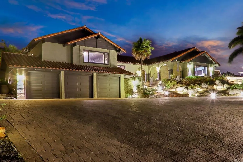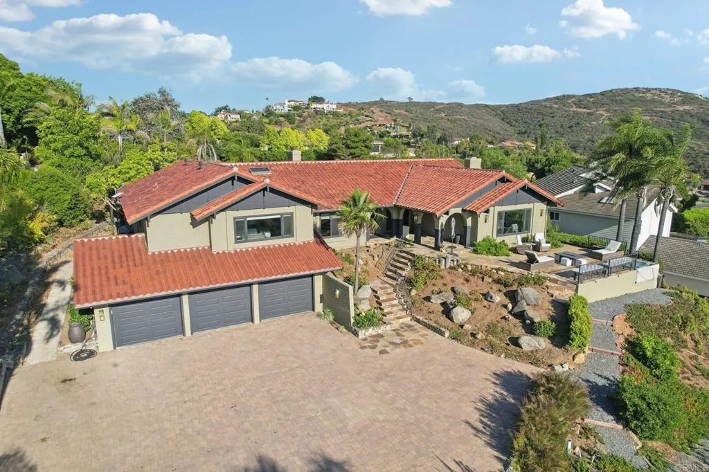 Move-in ready and highly upgraded, this ocean-view estate in one of Vistas most coveted neighborhoods offers the perfect blend of elegance, comfort, and entertainment. Perched on over an acre, the home boasts sweeping 180-degree views of the ocean, rolling hills, city lights, and stunning sunsetsframed by expansive windows throughout. Just 15 minutes from the coast, youll enjoy refreshing ocean breezes and quick access to the beach. Inside, 4 bedrooms, 2 full baths, and 2 half baths are complemented by soaring open-beamed ceilings, moody designer finishes, and two wood-burning fireplaces. The gourmet kitchen is a showpiece, featuring a Viking cooktop, double convection oven, and a 9-foot custom hand-cut walnut island paired with a handcrafted dining table. Modern upgrades include owned solar, Google Smart Home with wall-mounted control panel, smart TVs, keyless entry, and an oversized 3-car finished garage for convenience and storage. Outdoors, enjoy resort-style living with custom stonework, hardscaping, and a covered Italian rock grottocomplete with ocean views and outdoor TVperfect for year-round entertaining. A private vineyard with Cabernet & Syrah vines, plus fruit and nut trees, add to the propertys unique farm-to-table lifestyle. All tucked away in a gated, private settingyet just minutes to downtown Vista and major freeways (78, 5, and 15). A rare, move-in ready ocean-view estate and true entertainers dreamthis one is a must see!