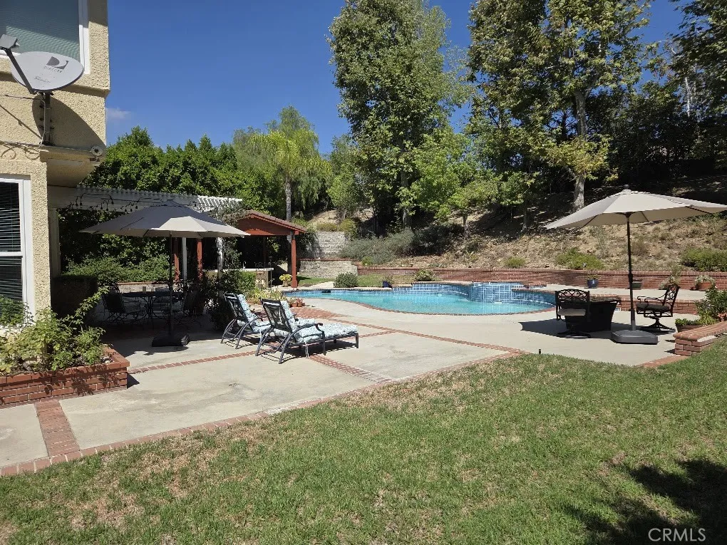 This sharp Greyhawk Ranch home is love at first sight! Its bright, open floor plan with high ceilings is an entertainer's delight. The home has beautiful hardwood floors, a kitchen that will leave the household gourmet, looking forward to creating epicurian delights in the kitchen, and it opens to a great family room with a fireplace, too. There is also a Great Living room with the second of three fireplaces, a large formal dining room, and a downstairs bedroom with a full bath. Upstairs, you have four large bedrooms, one of which could be used as a bonus room and a primary suite with a fireplace, a large walk-in closet and more. The yard has it all: a beautiful pool and spa, a covered BBQ area with refrigerator, sink, and a large TV. Home has a tankless water heater, pool, spa, and security cameras all controlled by cell phone. This home has it all and much, much more. Hurry homes in GreyHawk Ranch, do not last long! You don't want to miss this one!